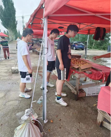 随后,团队成员来到了当地的杏果交易市场,进行更深入的考察与调研。据了解,当地的杏果产业比较发达,果农们将自家采摘好的杏果进行挑拣等简单处理后,一部分拿到当地的交易市场进行售卖,另一部分品质好一点的杏果则通过电商等方式售卖到各地。因此,他们对于质量的检测标准尤为重视。活动过程中,成员们主动帮助果农售卖他们的杏果,并对需要寄件的杏果进行筛选与包装。