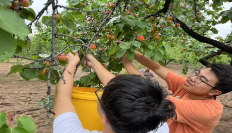 活动伊始,成员们在当地相关负责人的带领下来到了杏园进行实地考察,向果农们了解杏树的生长过程以及杏的销售方面的内容。活动过程中,队伍成员帮果农采摘成熟的杏并对其进行分拣。