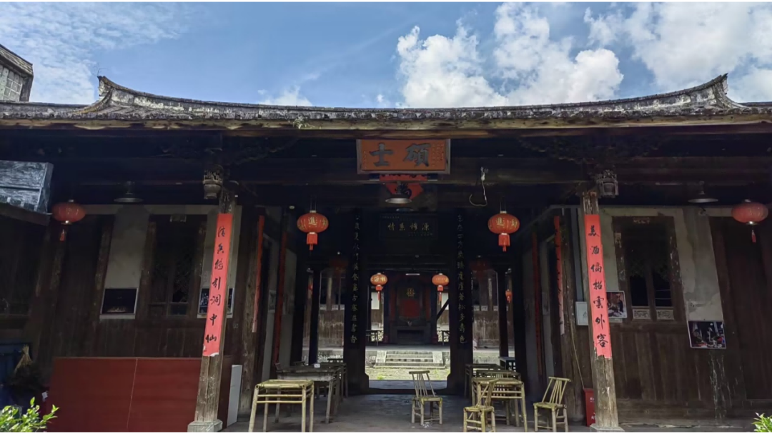 团队成员一行刚到溪源村口,入眼可见一座气势恢宏的方形古寨,它是村里的地标建筑——溪源寨。溪源寨是溪源村一座有着100多年历史的美丽古寨,队员们一踏进寨子,扑面而来的是历史的气息。矮墙内侧仍保留着人物故事与鸟兽花卉等图案。整座古寨最有意思的是大门和围墙。大门用硬木制成,厚达20多厘米,外围以铁板防火,十分坚固。寨内细部雕刻亦十分精细,浮雕、圆雕、透雕技艺并举,线条生动流畅,形象逼真妙趣。当地村民介绍,溪源寨在历史上为村中的百姓躲避土匪兵寇中起了很大的作用,是一座名副其实的“福寨”。