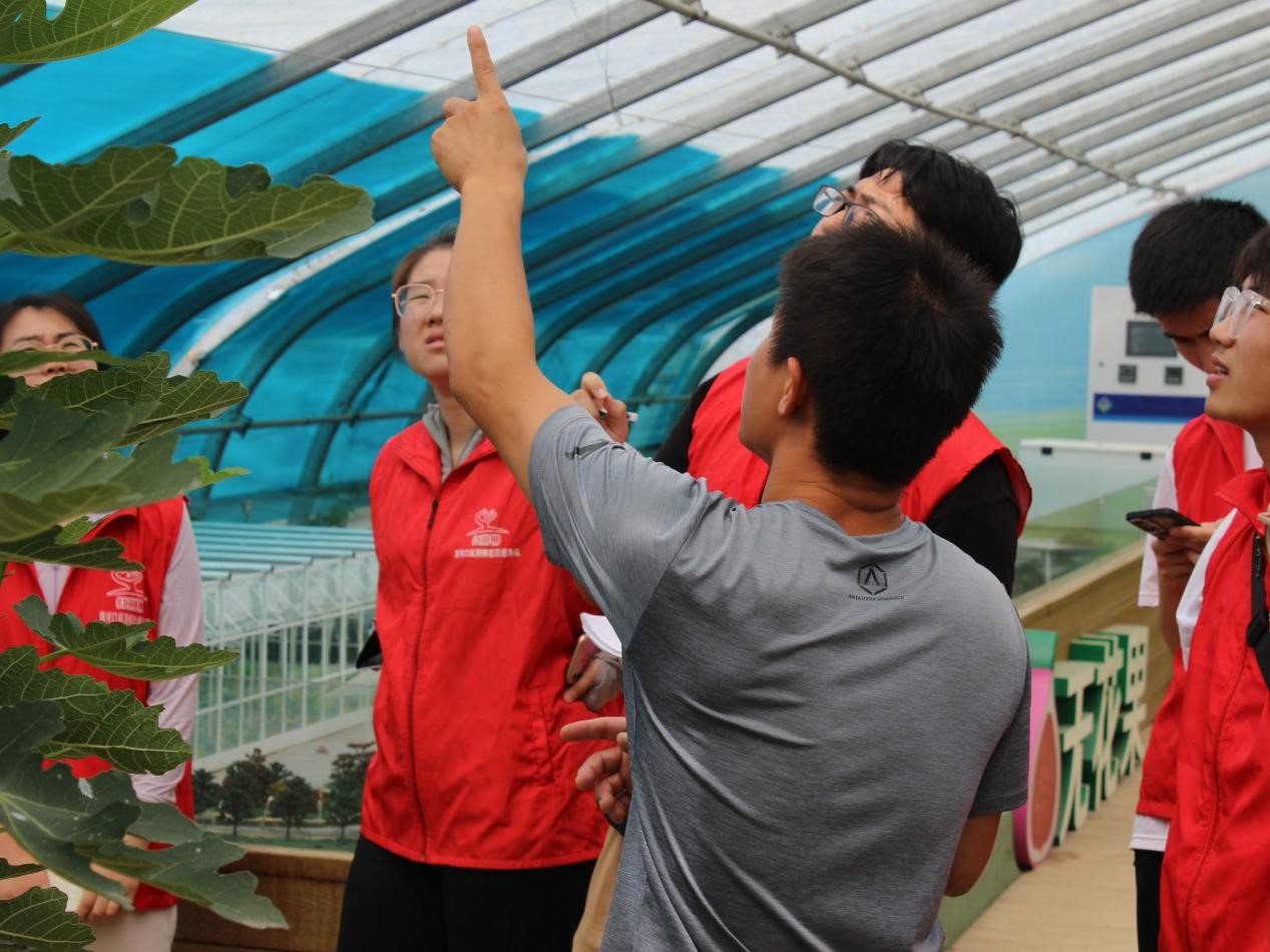 7月10日,团队抵达垦利区黄河口镇,在镇政府工作人员的带领下,团队参观了黄河口镇无花果产业园研学基地。产业园内共建有51座大棚,种植了以无花果为主要产品的多种农副产品。通过产业园工作人员的介绍和讲解,团队成员学习到无花果品种及种植环境等多方面的经验,了解到当地无花果种植多为人工种植,对劳动力需求大,给当地居民带来了更多的就业机会,促进了当地经济发展和乡村振兴。