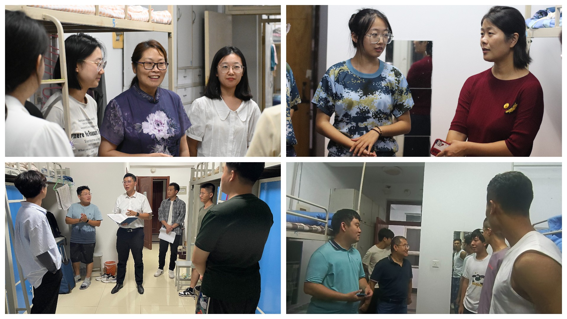 当天晚上,学院领导、系主任和学生工作办公室全体辅导员走访了新生宿舍,对新生的到来表示欢迎,与新生就入校后的住宿、学习等方面进行了交流,鼓励新生尽快融入大学生活,做好生涯规划,以饱满的热情投入到未来的学习、生活中去。
