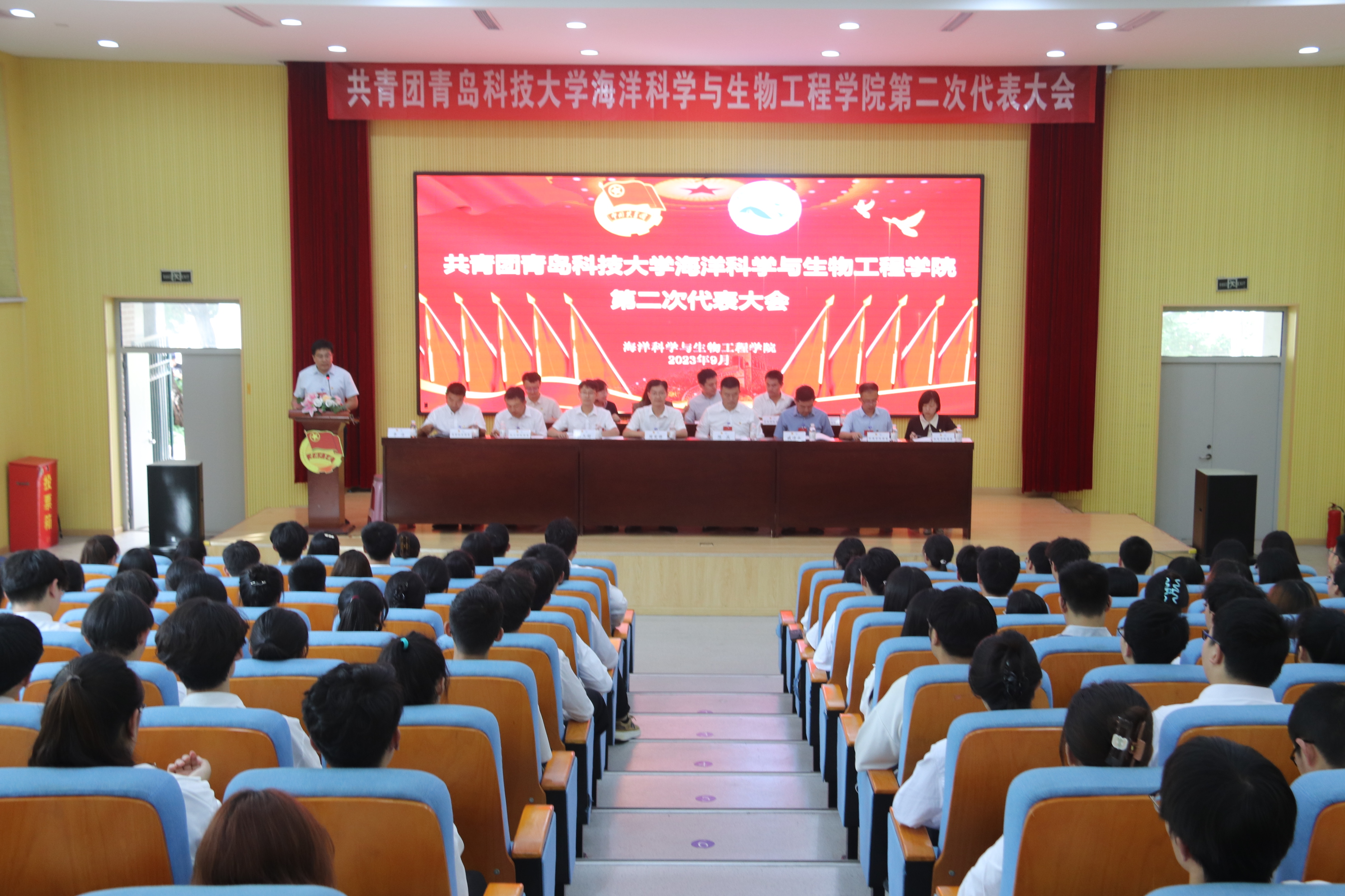 9月16日下午,共青团万象城allwincity官网海洋科学与生物工程学院第二次代表大会在四方校区尚舜报告厅顺利召开,海洋学院党总支书记周宪锋、校团委副书记陈兵、海洋学院副院长顾玉超、海洋学院党总支副书记兼副院长臧传永出席大会开幕式。兄弟学院团委书记、代表和学院102名代表参加会议。会议由海洋学院团委书记李浩主持。