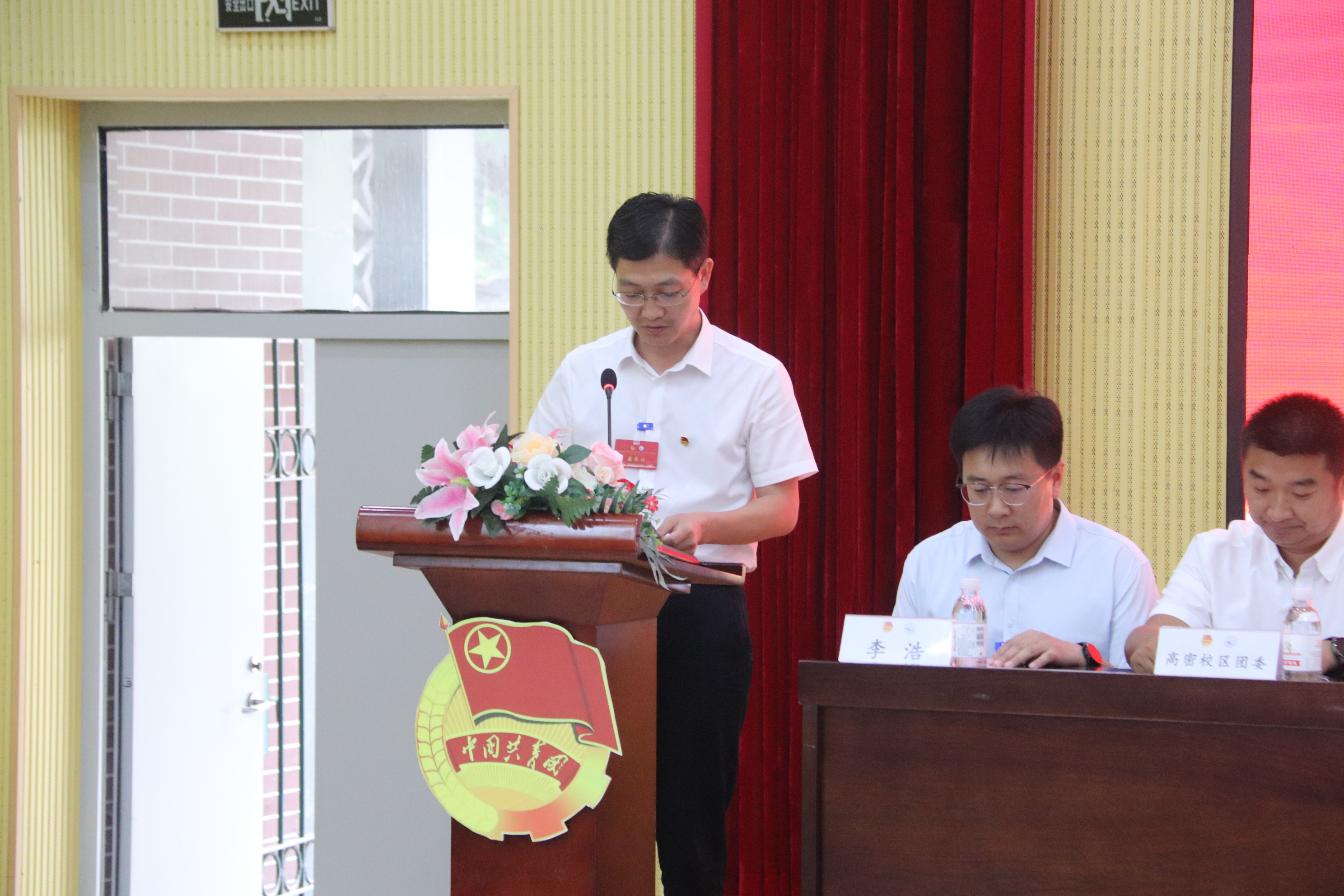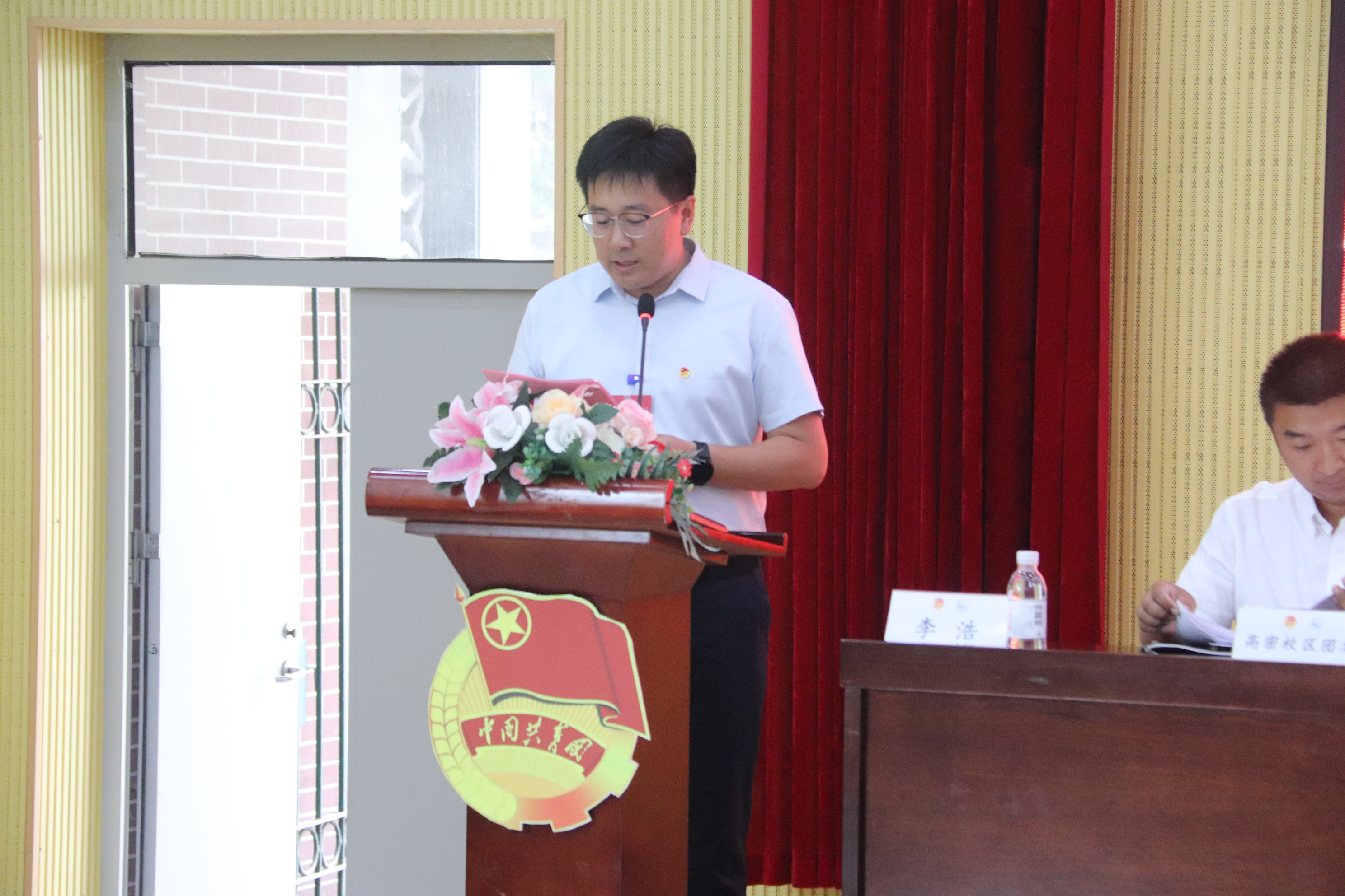 陈兵代表校团委对大会的召开表示热烈祝贺。他充分肯定了海洋学院共青团取得的各项工作成绩,并希望广大团员青年要坚定信念,志存高远;各级团组织要高举旗帜,改革创新。共青团干部要砥砺奋进,勇担重任。并希望海洋学院以此次大会召开为契机,以昂扬的斗志、饱满的热情、坚定的信念、顽强的意志,踔厉奋发,开拓创新,开创海洋学院共青团工作的新局面。