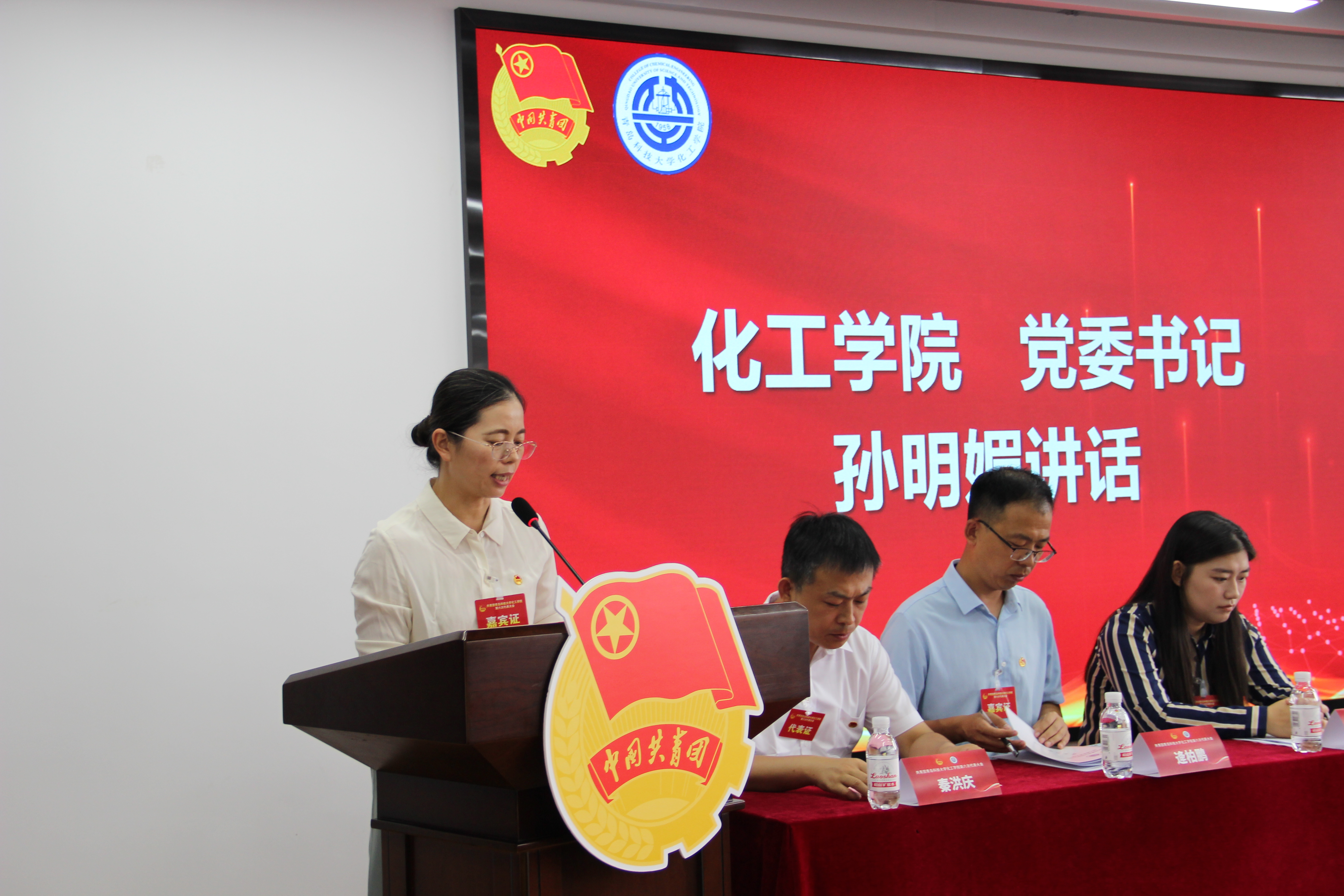 王邑代表校团委向大会的胜利召开表示热烈的祝贺。她充分肯定了化工学院共青团取得的各项工作成绩,近年来化工学院团委积极适应共青团改革新形势,紧密围绕学校和学院中心工作,服务发展大局,把握青年特点,坚定不移的聚焦主责主业,始终将做好青年团员的思想政治引领、服务青年成长成才摆在首要位置,开展了卓有成效的工作。