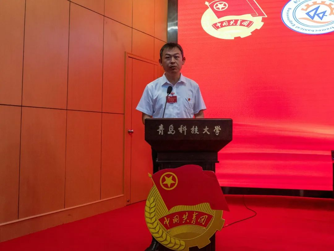 随后,大会宣读了校团委、各兄弟学院团委的贺电、贺信。化工学院团委书记秦洪庆代表兄弟学院团委向大会致贺词。