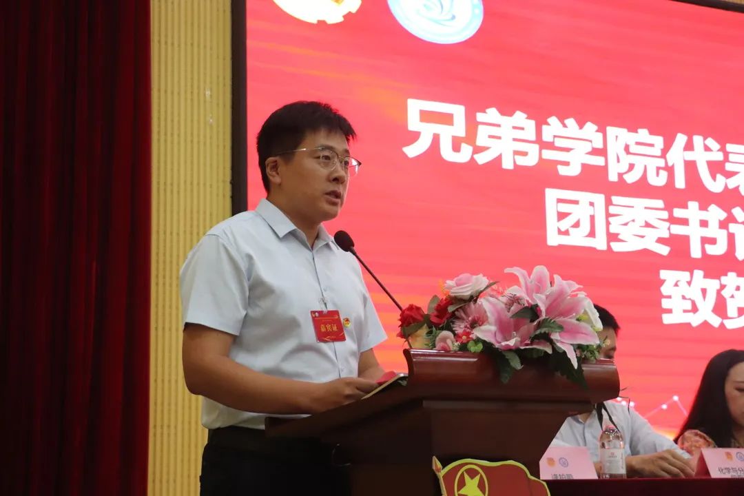 海洋学院团委书记李浩代表兄弟学院向大会致贺词。各学院向大会发来贺电、贺信。