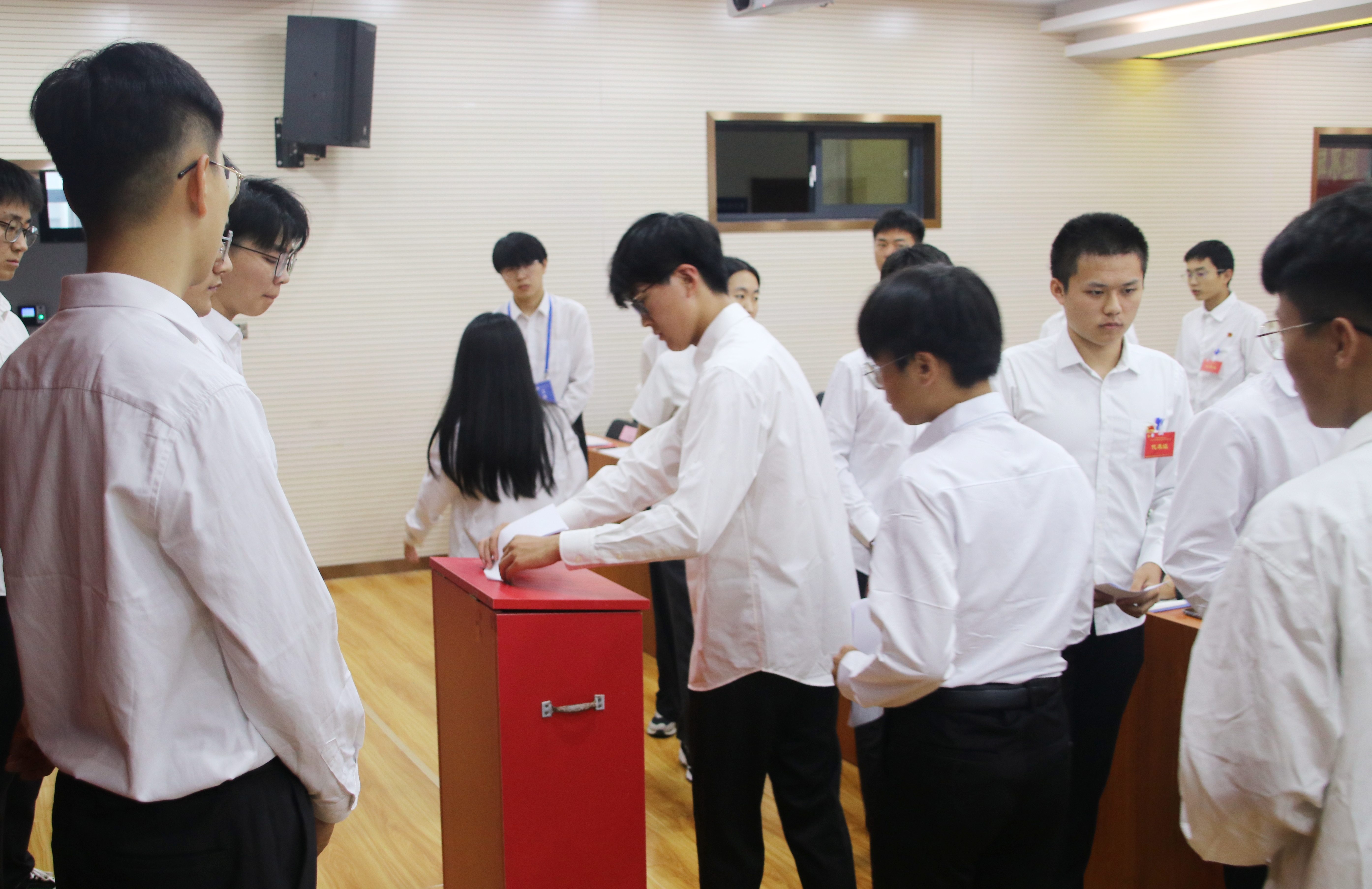 下午十六时,大会进行第二次全体会议,审议通过大会决议(草案)。全体代表庄严神圣地行使了自己的权利,投票选举产生了共青团万象城allwincity官网信息科学技术学院第三届委员会委员和共青团万象城allwincity官网第十四次代表大会代表。