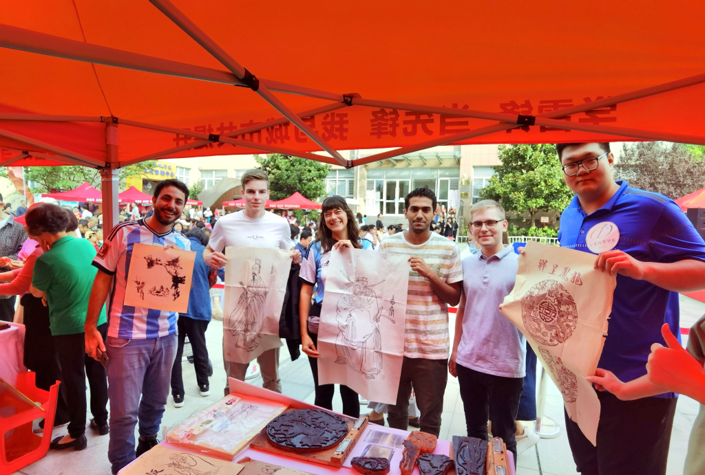 启动仪式上,中、德学生与社区居民进行热情互动,主持人教授德国学生简单的中国问候语,现场气氛热烈融洽。随后,中、德学生一同欣赏了由社区居民带来的歌舞表演、情景话剧,生动演绎引人入胜。仪式过后,中、德学生参观了非物质文化遗产手工艺品展,亲身感受民俗匠人的精雕细琢,领略中国传统文化魅力。德国留学生们现场体验了拓印版画,听手工艺人讲述了民俗文化的发展历程,受到深深的震撼。