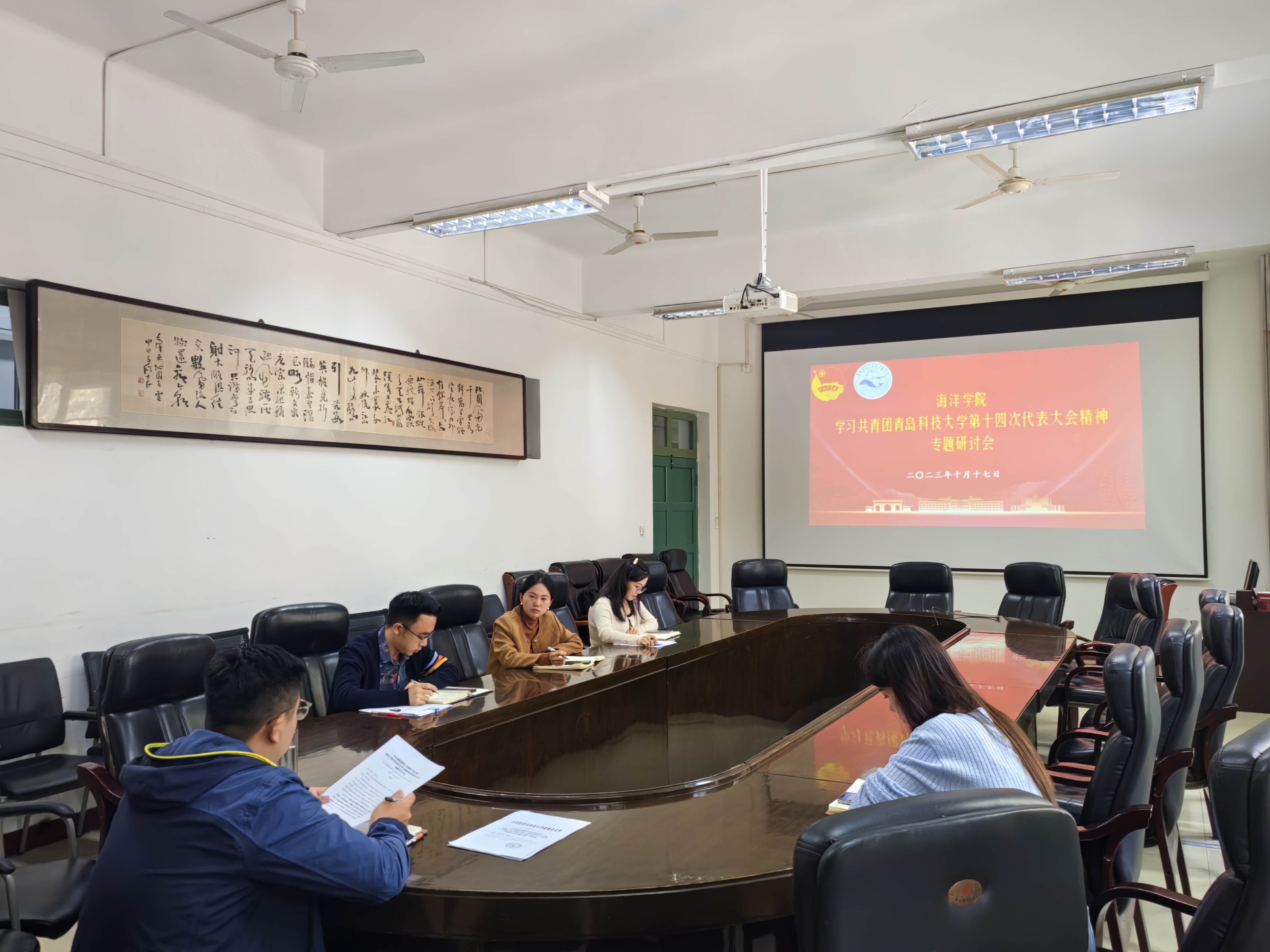 10月17日,海洋学院团委召开万象城allwincity官网第十四次团代会精神专题研讨会,认真传达学习校第十四次团代会精神。学院全体团干部参加会议,会议由团委书记李浩主持。