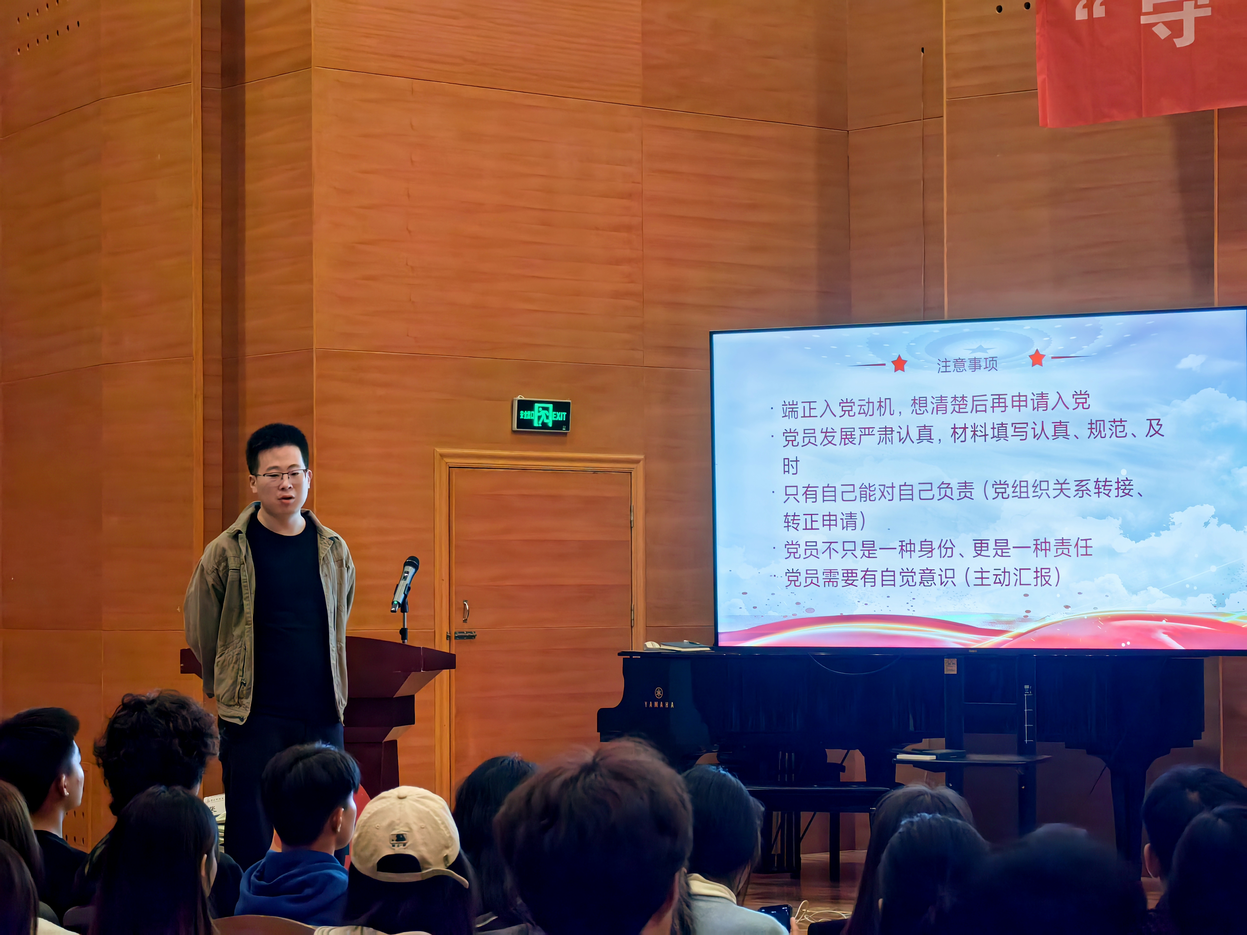 盛士峰以“关于党员发展,你要知道的事”为主题,梳理了入党整体流程,分享了如何成为一名光荣的积极分子、预备党员以及正式党员,鼓励团学干部不断提升自我,汲取信仰力量,坚定理想信念。