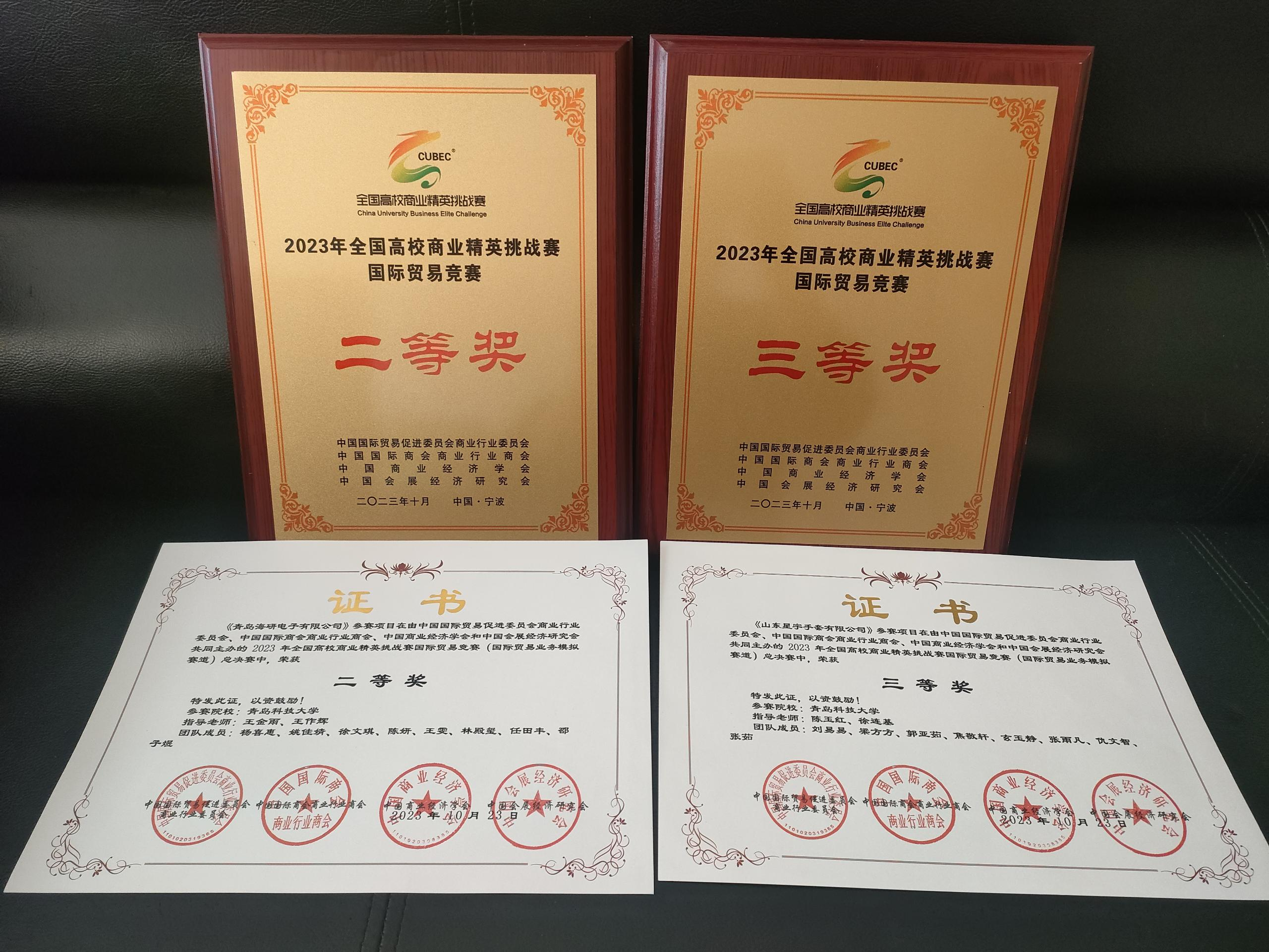 近日,2023年全国高校商业精英挑战赛国际贸易竞赛总决赛在浙江省宁波市落下帷幕。在与来自全国25个省市、329支队伍的同台比拼中,万象城allwincity官网高密校区两支参赛队伍获全国二等奖1项、三等奖1项。