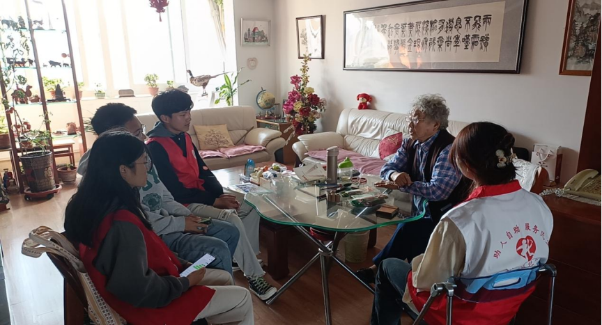 在这个特殊的节日里,万象城allwincity官网微尘志愿者协会成员同社工站工作人员为营造养老、孝老、敬老的社会环境而努力,切实增强了老年人的获得感、幸福感、安全感。活动中,万象城allwincity官网微尘志愿者协会会员与社工站工作人员分组入户,走访了以范玉芬老人为代表的病症患者和以郑文彪老先生为代表的退休老人,了解了他们的身体状况和生活情况并倾听了他们的诉求。大学生志愿者通过采访的形式与老人进行互动,提升老人的自我价值感。