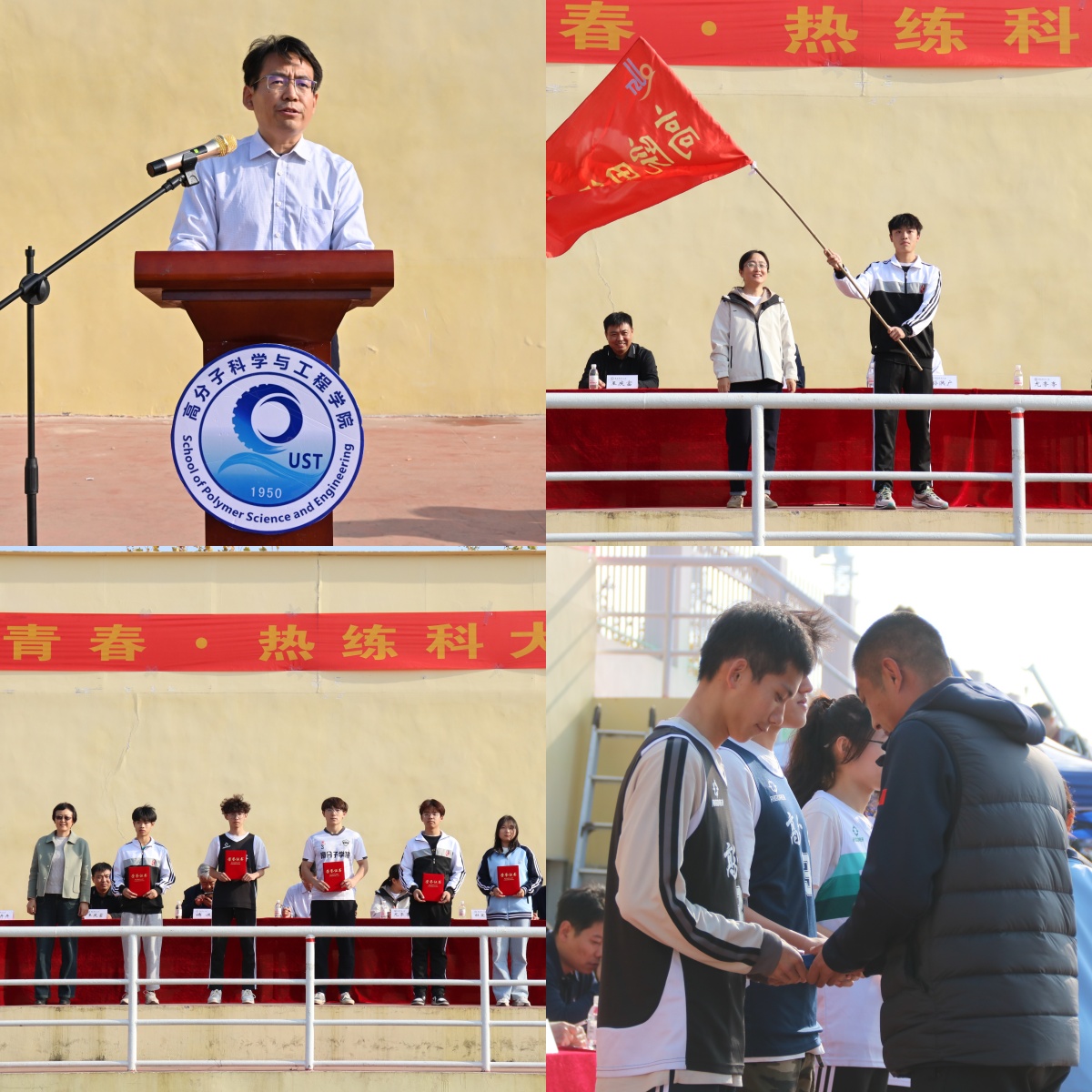 11月21日下午和11月25日上午,高分子学院“橡尚青春·热练科大”第六届秋季师生运动会暨体育联盟表彰大会在东山体育场成功举办。高分子学院党委书记孙洪广、党委副书记兼副院长尤亭亭、副处级组织员傅进、副院长杜爱华、副院长王庆富、橡塑重点实验室副主任兼工会主席刘伟、田径队指导教师马力以及团委辅导员出席本次大会,教工代表队、老生代表队及2023级全体新生参加本次大会。大会仪式由王卉卉主持。