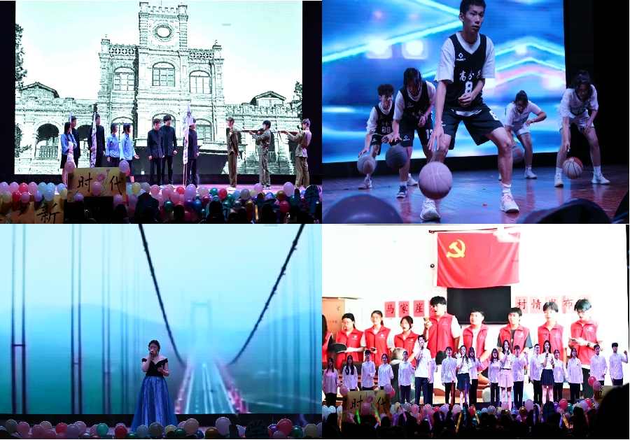 第二篇章——青春向党。百年前的红船,承载了今天的希望。歌曲串烧《歌唱百年》展现出不同时期的革命先辈们不惧困难,不怕牺牲的奉献精神,赞颂了一代代共产党人前仆后继,用青春,用生命践行维护的铮铮誓言。话剧《破晓》将我们带回1919年5月4日,面对国家和民族生死存亡,一批爱国青年挺身而出,全国民众奋起抗争,誓言“国土不可断送、人民不可低头”,奏响了浩气长存的爱国主义壮歌。《律动青春》以啦啦操,篮球,跳绳等多种项目表演形式,践行“爱体育,青科大”的号召,体现高分子学院高度重视学生体魄的强健,以及体育精神的培养。歌曲演奏《强国一代有我》中,铿锵有力的音符是青年学生忠诚于党,热爱祖国,胸怀大志的理想信念。中华民族伟大复兴征程上,始终有青年的声音,正如党的二十大报告中指出,当代中国青年生逢其时,施展才干的舞台无比广阔,实现梦想的前景无比光明。我们更当立志做有理想、敢担当、能吃苦、肯奋斗的新时代青年,展现高分子学院的“橡尚”精神。