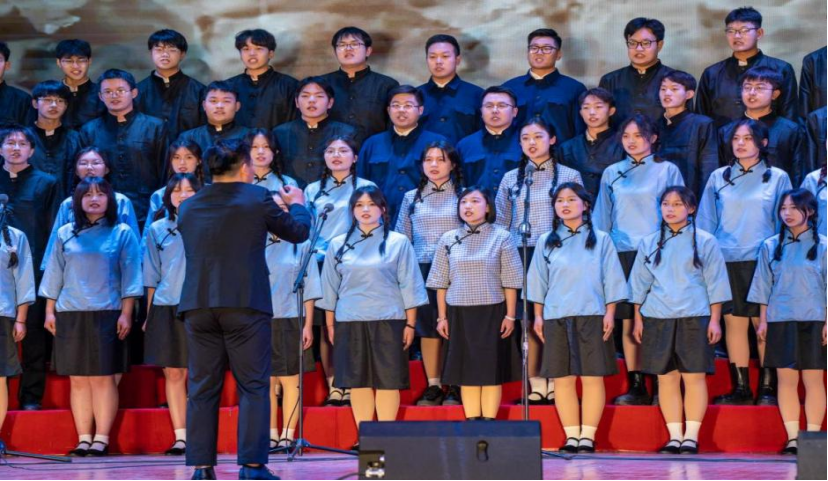 此次合唱比赛不仅是一场丰富多彩的文化艺术盛宴,也是一堂生动的音乐思政课。回首遥望“一二九”运动,青年学生的拳拳报国之声仍令人热泪盈眶,每每听到红色旋律,依旧对扣人心弦的旋律感到神往。学院将《黄河大合唱》中最鼓舞人心的第七乐章《保卫黄河》作为演出曲目,以短促跃动的曲调、铿锵有力的节奏,全景描绘了抗日军民英勇战斗的壮丽场景,表达了战胜敌人、夺取胜利的激情,展现出必胜的乐观主义情怀。机电青年在乐声中感悟先辈精神,在训练中磨砺奋进品格,发扬“一二九”革命抗争精神,努力成长为堪当民族复兴大任的时代新人,为实现中华民族的伟大复兴贡献青春力量!