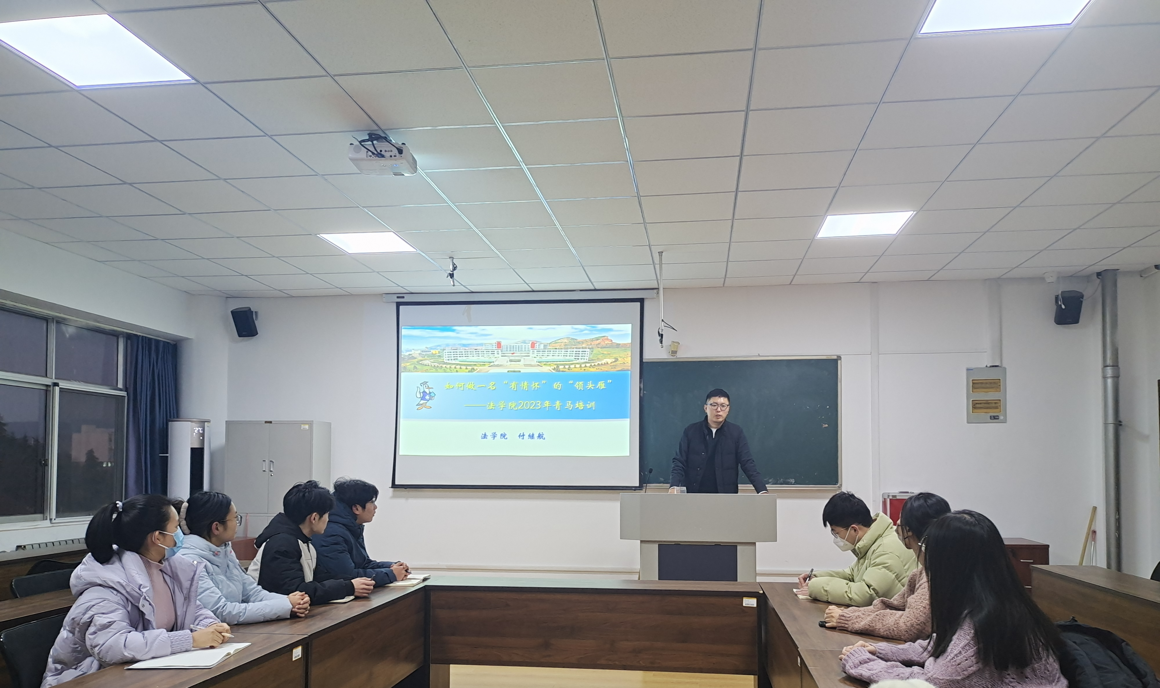 为深入学习贯彻习近平新时代中国特色社会主义思想,扎实推动青年马克思主义者培养工程深入实施,12月12日下午,法学院组织开展2023年秋季学期青马工程培训,法学院团委书记付继航担任主讲人,学院青马工程培训班成员、团校成员及学生骨干参加培训。
