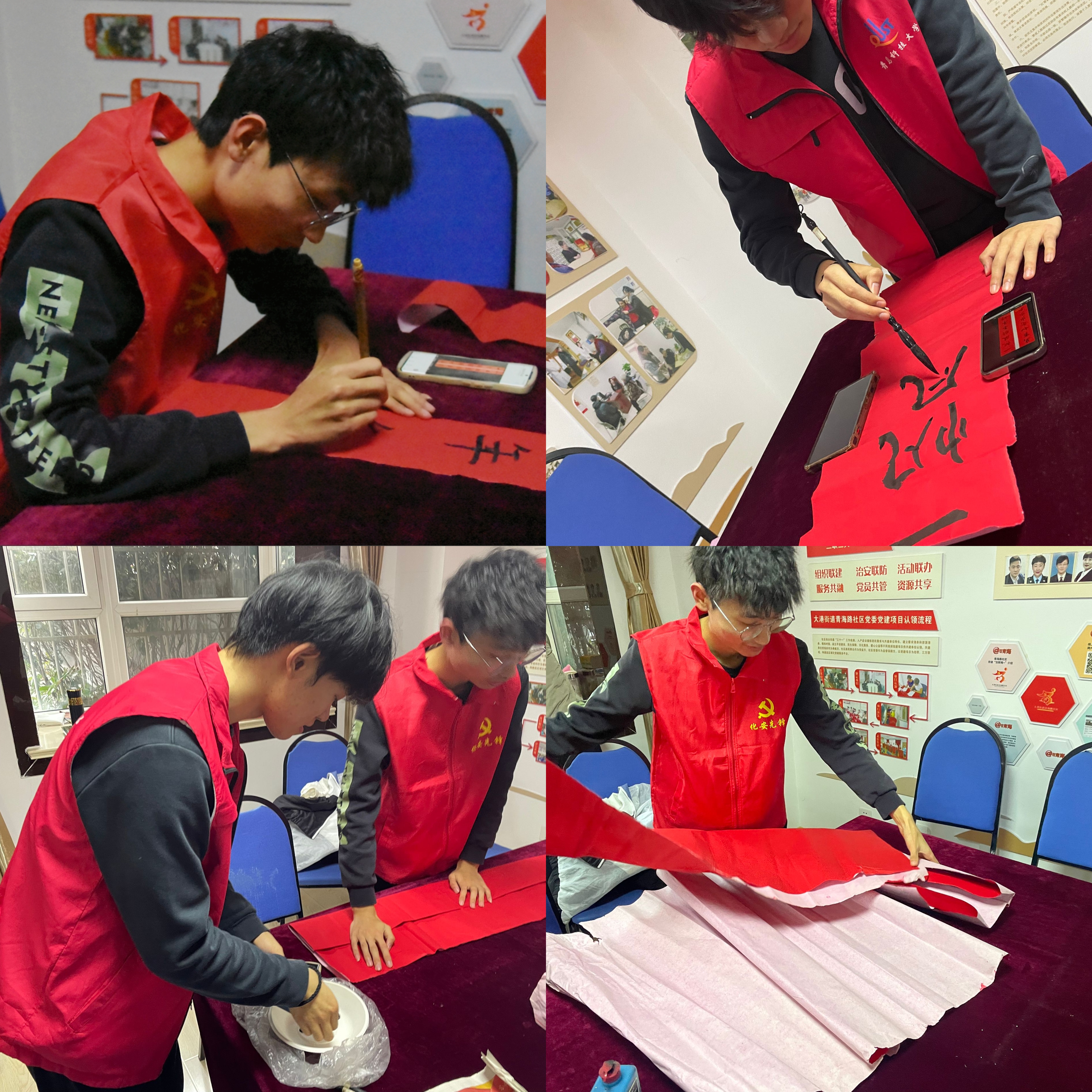 新春佳节至,万象更新始。为提高社区居民生活质量,服务社区工作,营造吉祥如意的春节氛围,化工学院化工实验211团支部于2024年1月18日在市北区大港街道青海路社区开展“墨香暖人心,送福迎新春”社区实践活动。