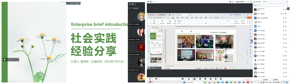 杨茂林分享了开展寒假社会实践的相关经验。温馨提示同学们社会实践的三个不同阶段需要注意的事项:前期要明确调研思路,准备充分;中期要善于发现问题,及时调整;后期要做好成果记录,汇总材料。此外,还提示同学们要尊重调研所在地的传统习俗,在开展实践活动中要保护人身安全、财产安全。