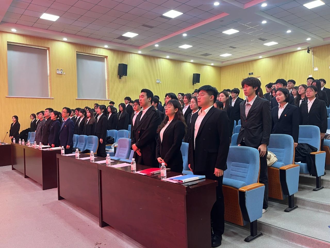 随后,逄柏鹏对上一届学生组织成员的辛勤付出表示感谢,并向新当选学生会成员表示祝贺。同时,他向同学们提出四点希望和要求:第一,要坚定理想信念,提升引领力;第二,要加强组织建设,提升组织力;第三,要聚焦初心使命,提升服务力;第四,要提高政治站位,提升大局贡献度。