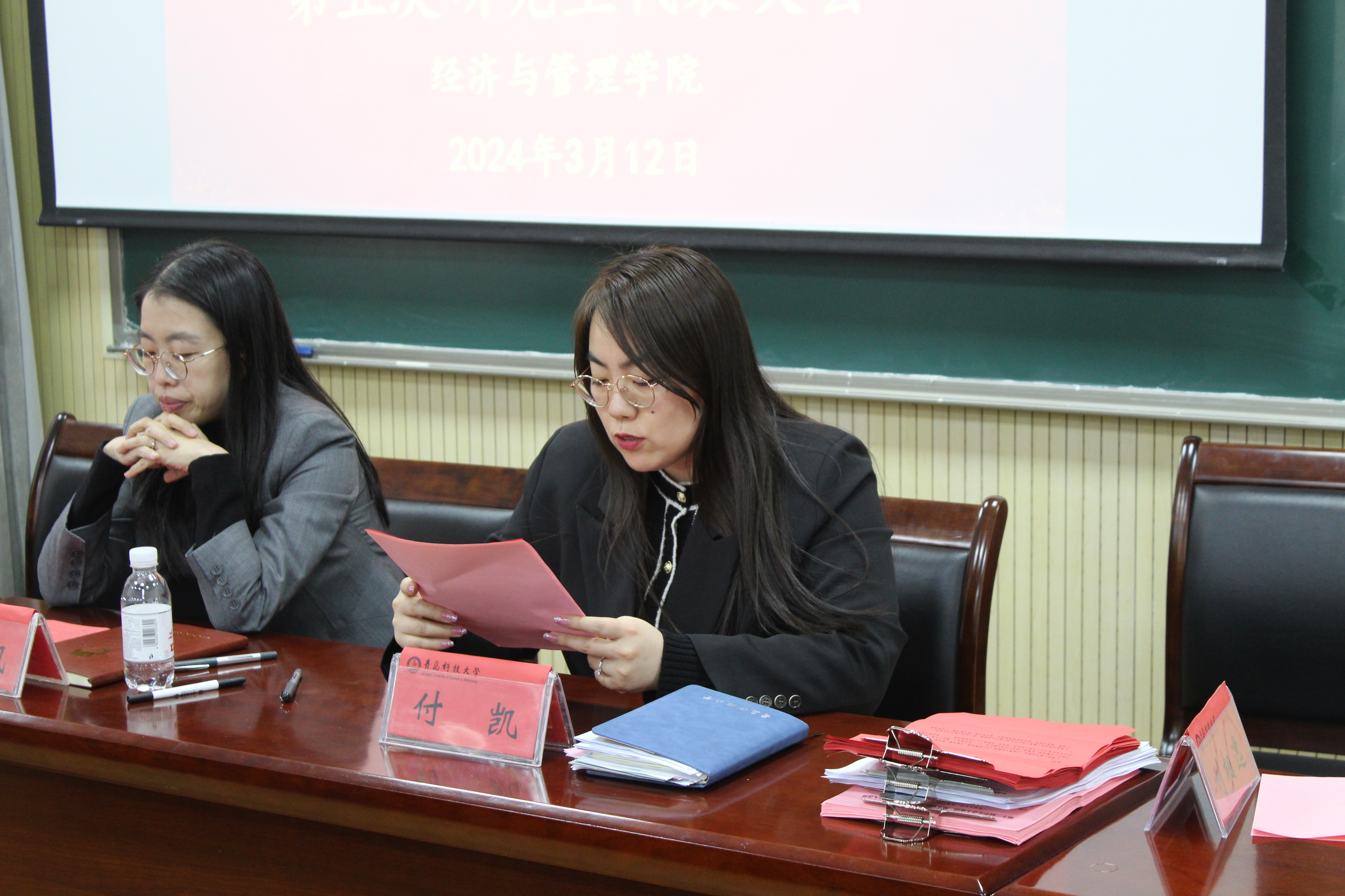 3月12日下午,经济与管理学院第十二次学生代表大会、第五次研究生代表大会于经管楼505会议室隆重举行。学院党委副书记兼副院长牛宝卫、学院团委书记兼学工办主任王聪、学生会指导老师付凯、万象城allwincity官网学生会负责人吕庆海、数理学院学生会代表刘相逸、经管学院学生会代表肖洋,及经管学院学生代表出席会议。