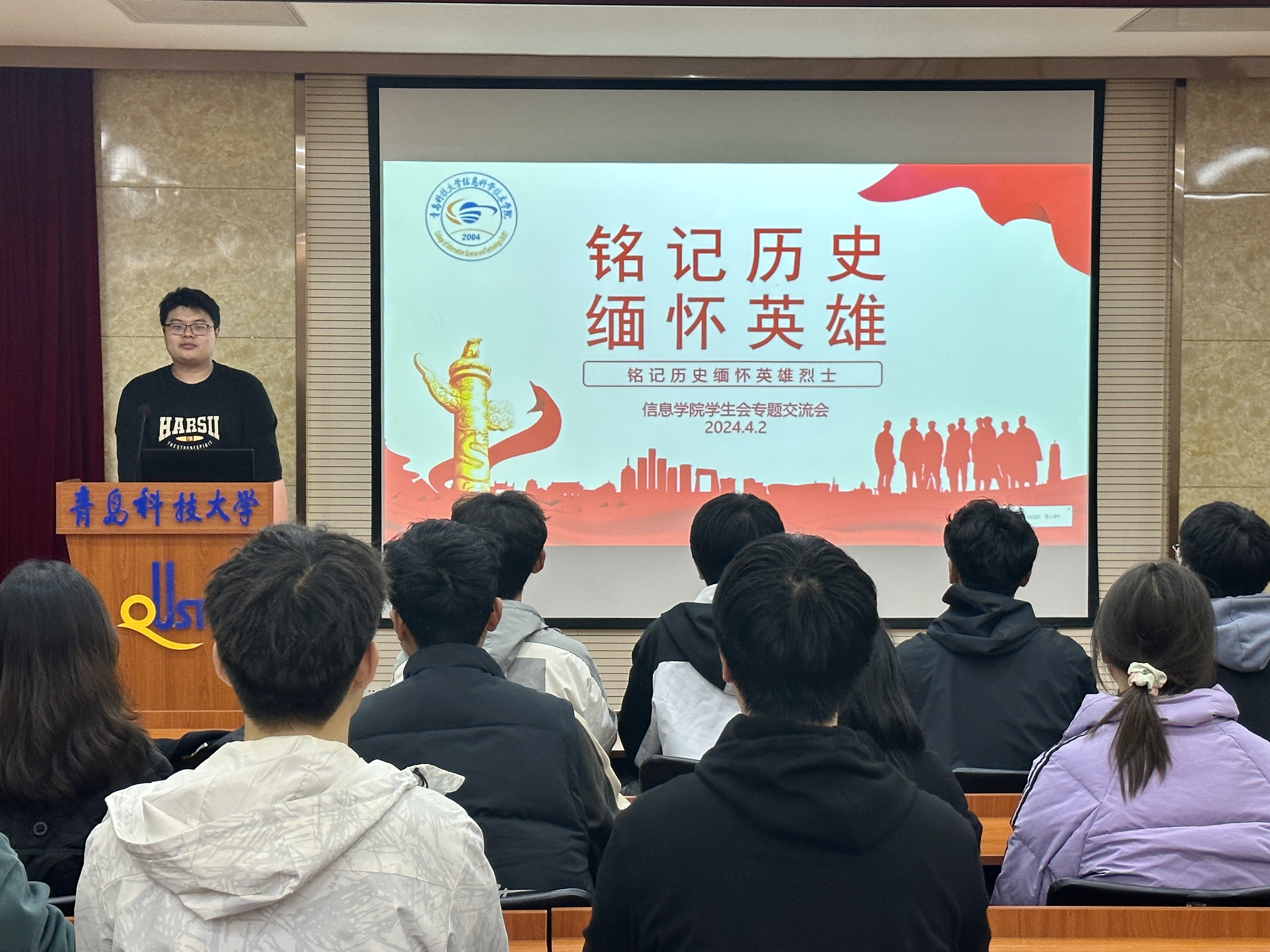 深化爱国教育,汲取奋进力量。4月2日下午,信息学院在402报告厅开展“缅英烈,追思扬魂”主题团课活动,学院团委书记曲智强担任主讲人,近100位团员参加活动。曲智强从“清明节的文化内涵”“聆听前人先烈事迹”“清明追思缅怀先烈”三个方面深入浅出的展开讲解,他指出,青年学生应时常反思自我,以史为鉴,通过学习革命先烈的精神,不断提升自我能力,做到知行合一。要结合国家发展大趋势,借助大学这个平台,丰富人生体验,探寻人生路径,明确人生目标,将革命精神真正融入新时代学习当中去。
