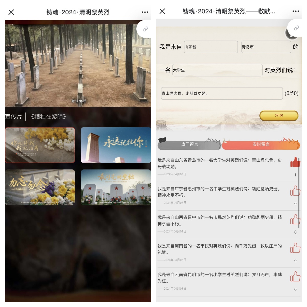 活动期间,同学们参与线上清明祭英烈活动,通过在线献花、留言寄语、观看英烈事迹视频、参与主题讨论、浏览英勇事迹和感人故事等多种方式,学生们表达了对先烈的深切怀念和崇高敬意。看着那些英勇无畏的身影,听着那些感人至深的故事,同学们深受触动。