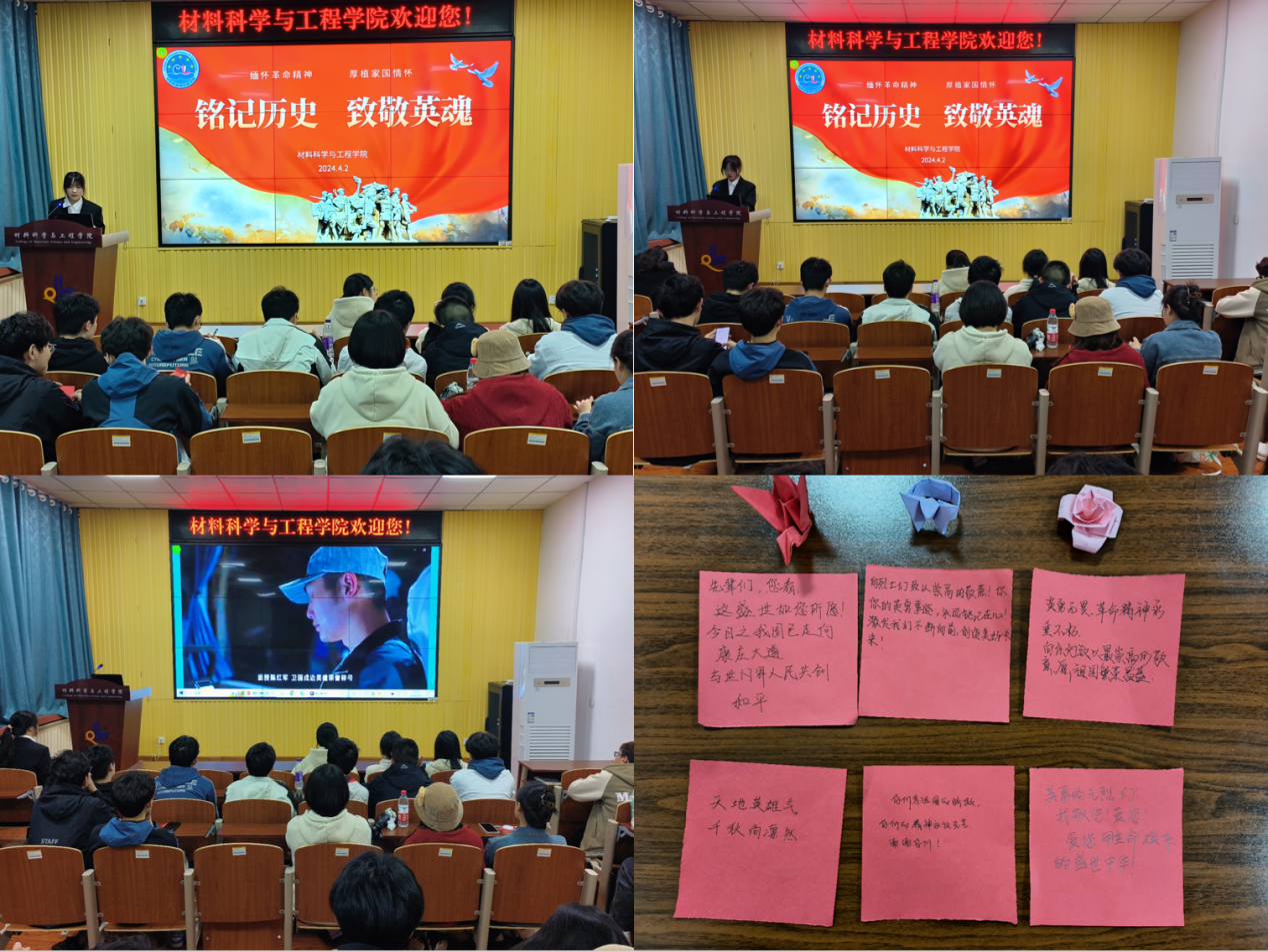 为深入学习贯彻习近平总书记有关缅怀先烈、崇尚英雄的系列重要指示精神,近日,材料学院开展“清明祭英烈,共铸中华魂”清明教育主题系列活动。