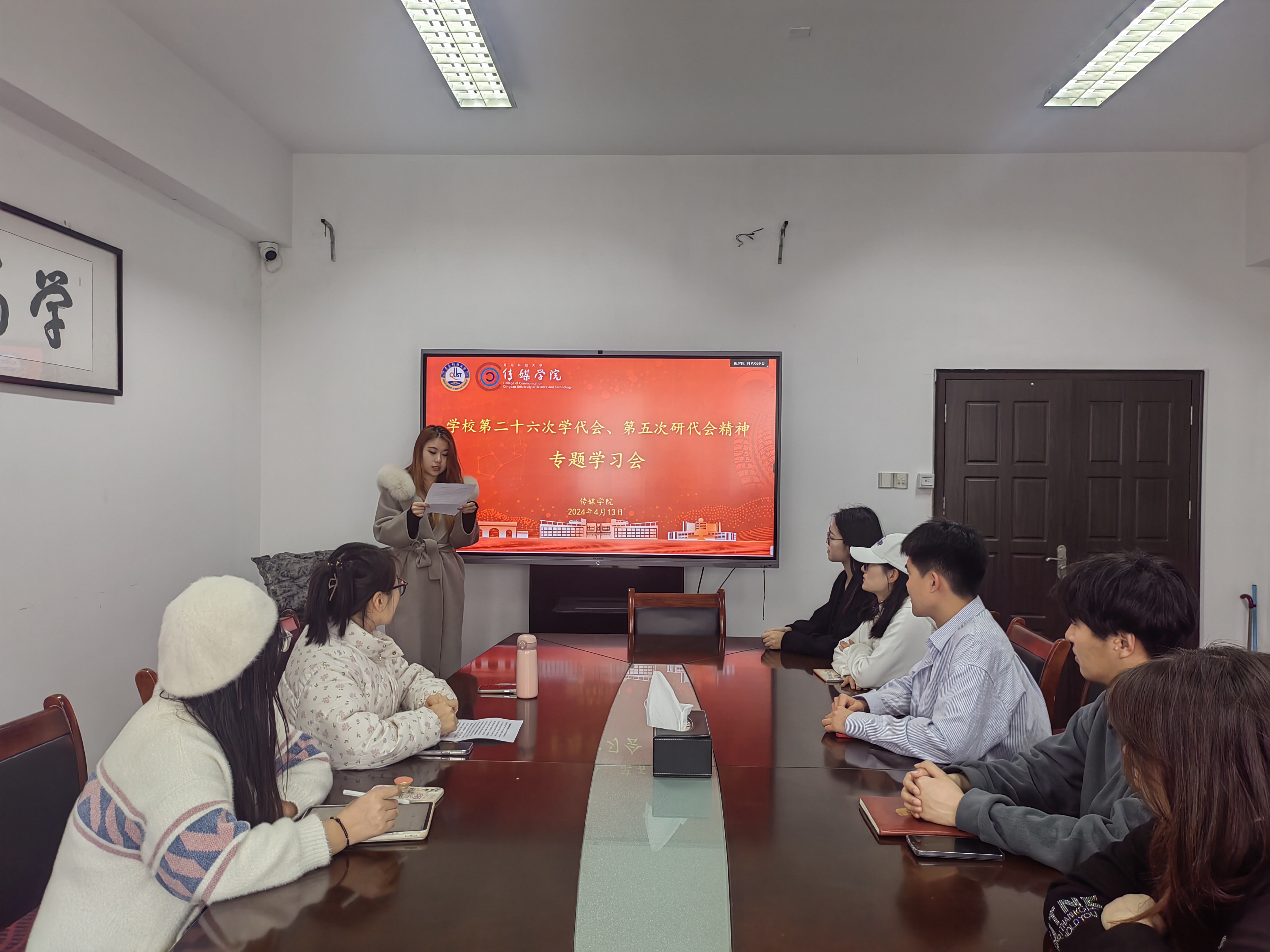 为更好贯彻落实学校第二十六次学代会、第五次研代会精神,提高学院学生组织服务师生效能,4月13日下午,传媒学院于315会议室召开学习贯彻学校第二十六次学代会、第五次研代会精神专题会议。学院学生会主席团、研究生会主席团及骨干成员参加会议。