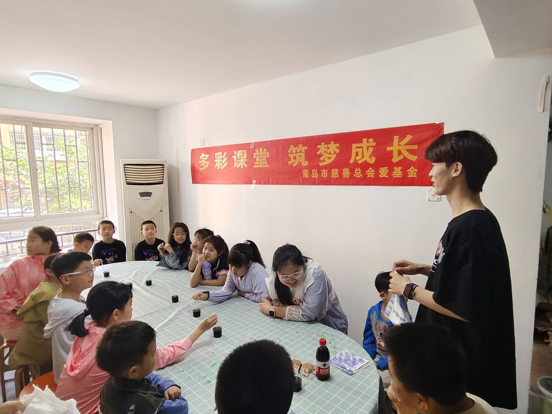 为进一步贯彻习近平新时代中国特色社会主义思想和党的二十大精神,传承优秀传统文化,扎实推进“百万大学生进社区”活动,6月2日,海洋学院“山海情支教调研团”赴李沧区翠湖社区开展“投身志愿服务,绽放扎染色彩”手工扎染支教活动。