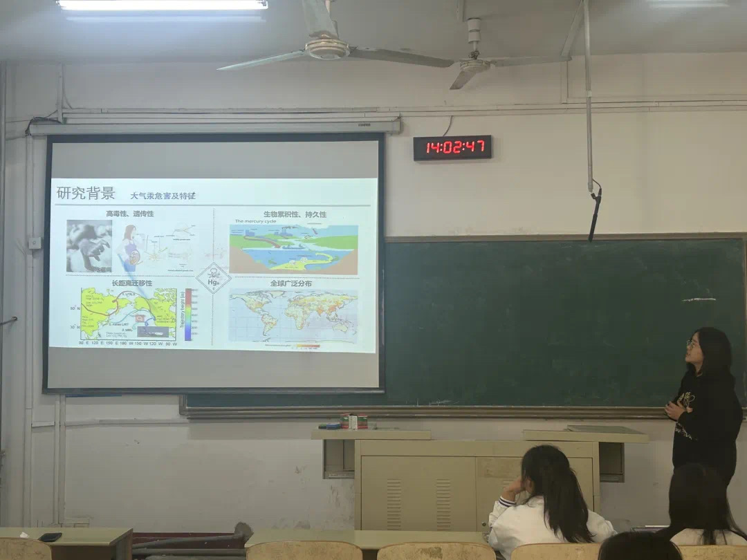 杨姝老师结合自己的科研成果,以有色冶炼烟气催化脱汞材料研究及思考为主题,向同学们介绍了重金属污染控制技术、资源回收利用及环境功能材料制备的相关内容,并就学术规划与发展、个人研究兴趣、如何保持学术热情等话题与同学们展开了深入探讨,鼓励同学们积极主动地学习。提问互动环节,杨姝老师针对同学们普遍关心的专业未来发展方向等问题进行了详细解答。
