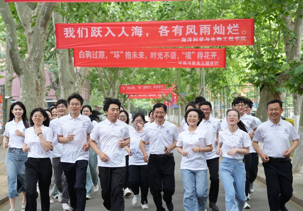 为加强毕业生爱校荣校教育,推进学校体育综合改革,让广大青年学生在体育锻炼中享受乐趣、增强体质、健全人格、锤炼意志,海洋学院团委于6月6日上午开展“为健康奔跑 向未来出发”毕业跑活动。海洋学院院长顾玉超、党委书记周宪锋、党委副书记兼副院长刘浩、副院长孟祥民、团委书记兼学工办主任秦洪庆、毕业生辅导员刘金岭以及毕业生代表参加本次活动。