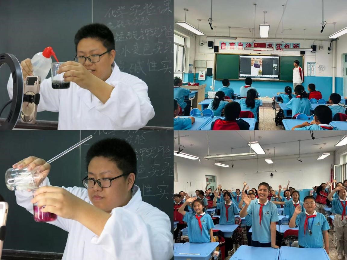研支团兵团分队邀请化学爱好者协会,通过视频连线的形式,为六年级的同学们带来了一堂精彩的实验课,化学爱好者协会成员分别向同学们展示了蓝瓶子变色、茶水墨水变色、神奇的“芬达”、探究酸碱性四个实验,同学们随着试剂瓶的颜色变化不断发出惊叹声,感受到了属于化学的魅力,同时拓宽了知识面,激发了探索科学的兴趣,为学生们埋下了一颗向往科学的种子。