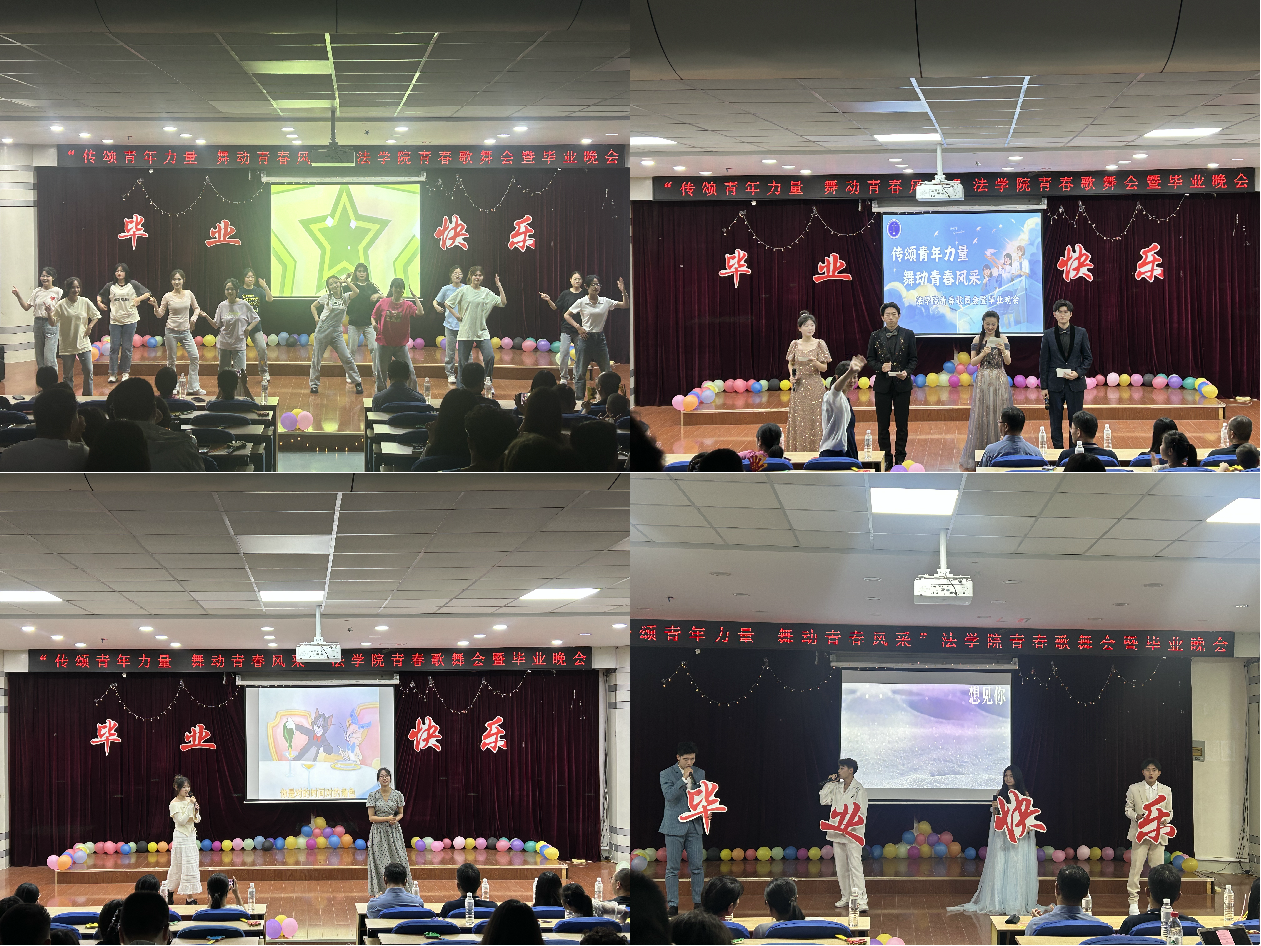六月盛夏,炽热闪亮,毕业季如约而至。6月17日晚,法学院团委在弘毅楼A201举办“传颂青年力量,舞动青春风采”2024年青春歌舞会暨毕业晚会。法学院党委书记曲明、党委副书记兼副院长王祥梅、社工系主任王卫国、法律系副主任田源、法律系副主任余亚楠、各系专职教师、辅导员及学院学生200余人参加了本次晚会。