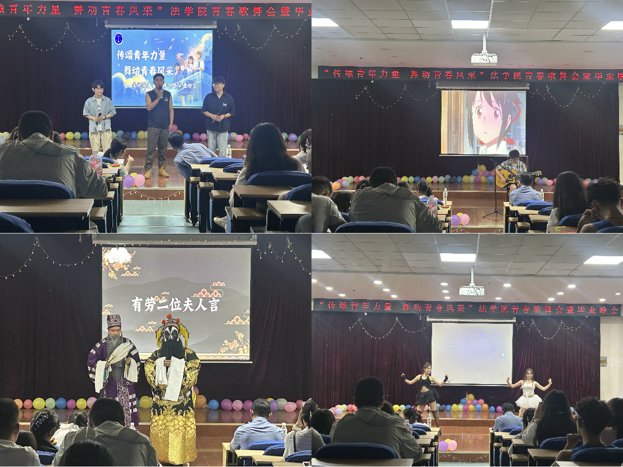 青春成长展风采。学院团委举办“传颂青年力量,舞动青春风采”2024年青春歌舞会暨毕业晚会,以歌舞再现专属法学院毕业生的“独家记忆”,在激昂的歌声中表达对毕业生的美好祝福,祝福毕业生筑梦前行,扬帆启航,奔赴下一场山海。