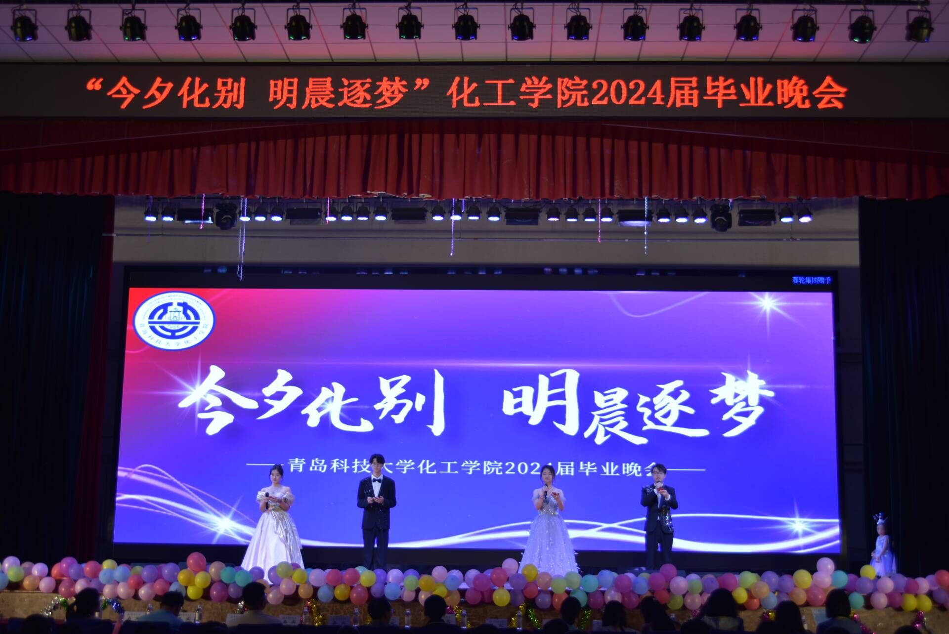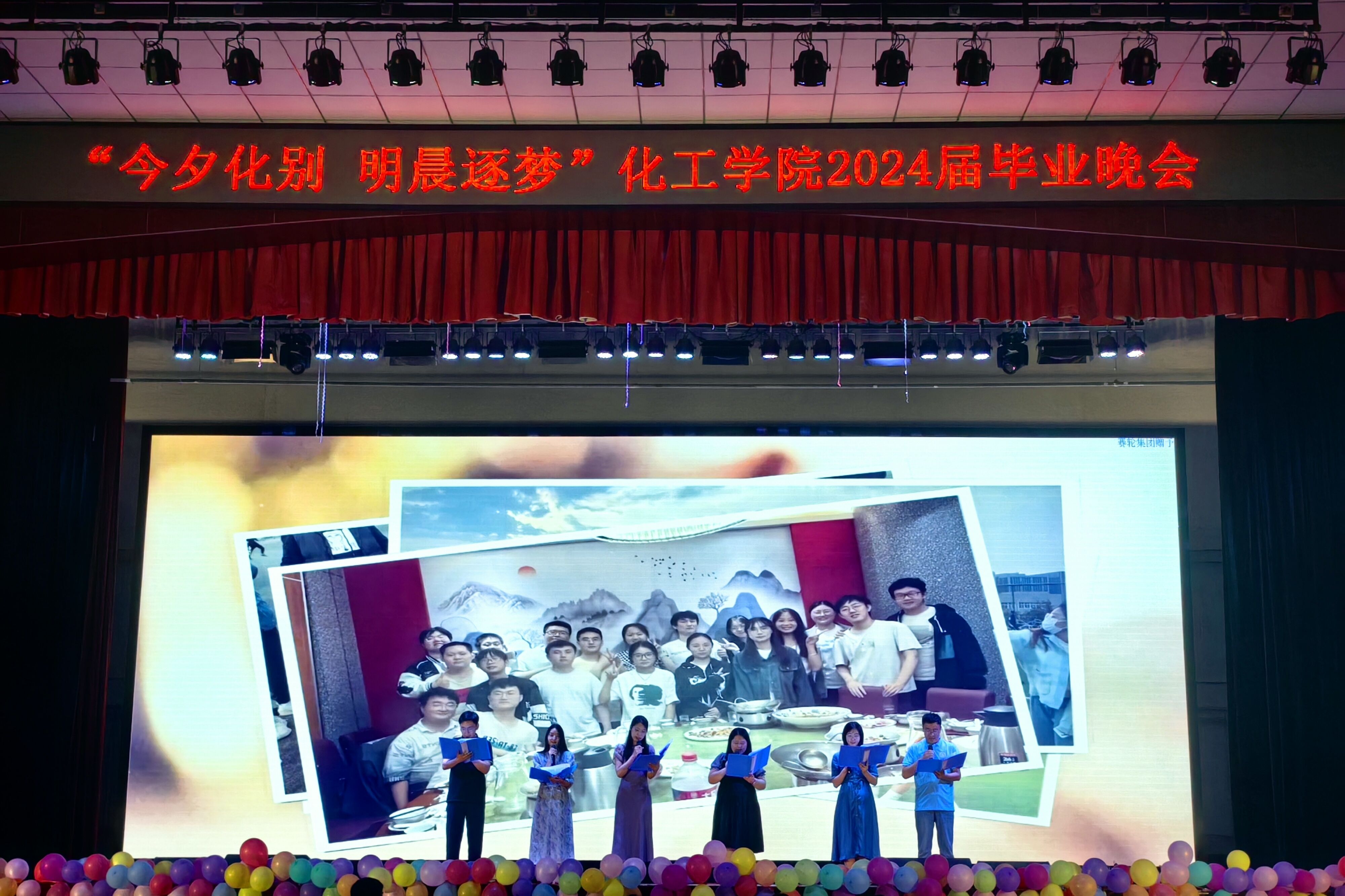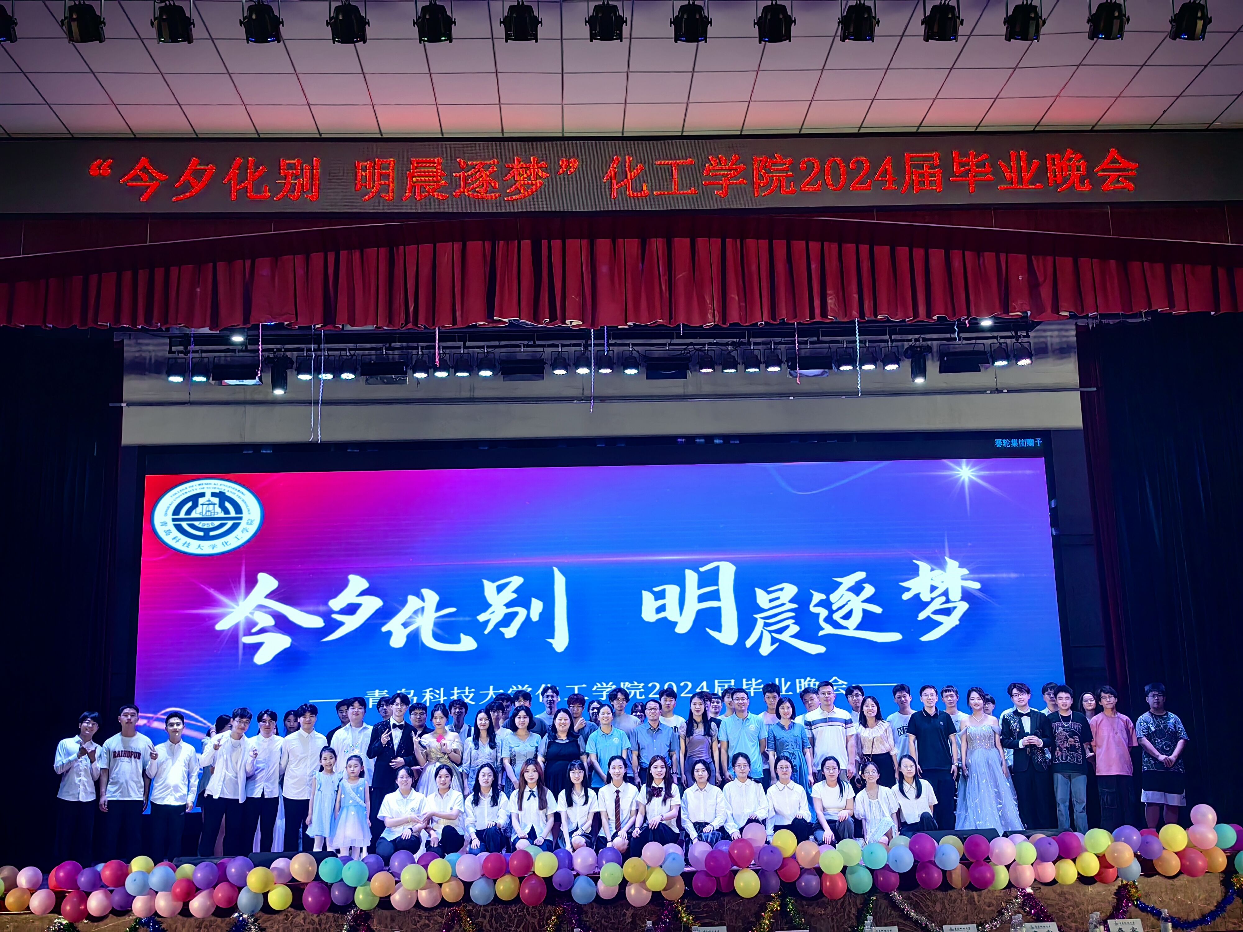 6月18日,化工学院团委于四方校区西礼堂举办“今夕化别·明晨逐梦”2024届毕业生晚会。化工学院党委书记孙明媚、党委副书记贾建闯、化工学院全体班主任及辅导员老师出席本次活动。