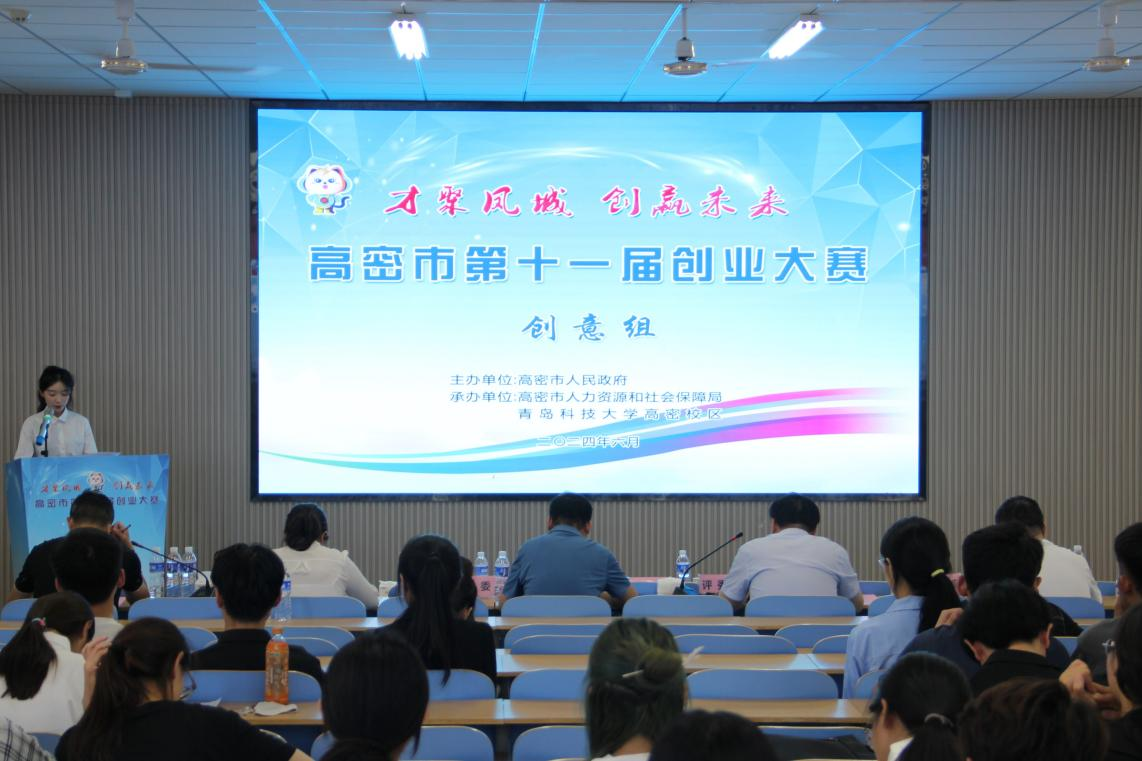 近日,高密市第十一届创业大赛创意组比赛圆满落下帷幕。本届大赛由高密市人民政府主办,高密市人力资源和社会保障局、万象城allwincity官网高密校区承办。高密市政府人社局领导、校区创新创业工作相关老师出席活动。本届比赛共25支团队、120名青年学生报名参赛。经过激烈角逐,最终选拔出10个优秀项目,分别获得金点子和银点子项目。
