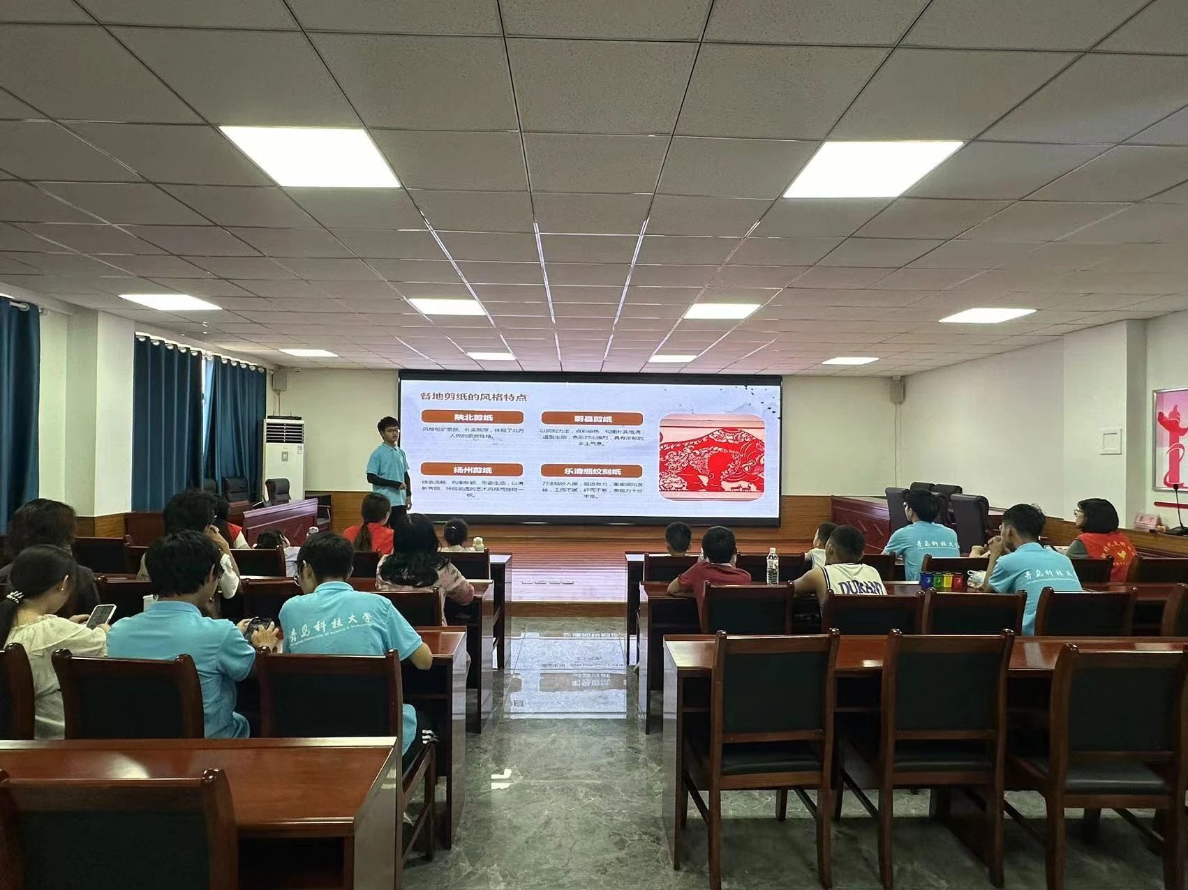 活动现场,为了让孩子们亲身感受剪纸文化之美,志愿者团队还与当地政府联系,请了当地剪纸非遗继承人韩霞老师到现场,并在台上亲自演示剪纸作品制作的全过程,小朋友们也纷纷完成了自己的剪纸作品,在激发了孩子们的动手能力,更让孩子们意识到保护我国非物质文化遗产的重要性。
