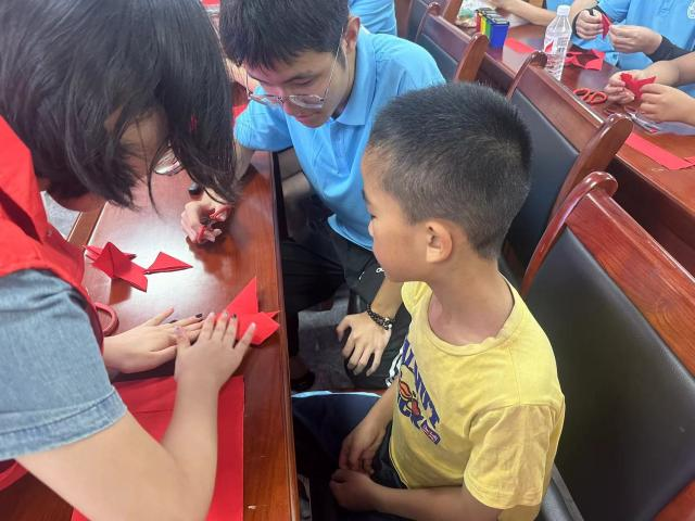 剪纸手艺自2006年起被我国列为第一批非物质文化遗产,为增强孩子们对中华民族优秀传统文化的认知,志愿服务团队结合实际为现场小朋友详细讲解剪纸的历史渊源、发展历程、制作步骤等相关知识,让孩子们在不同种类的剪纸中感受传统非遗文化的魅力。