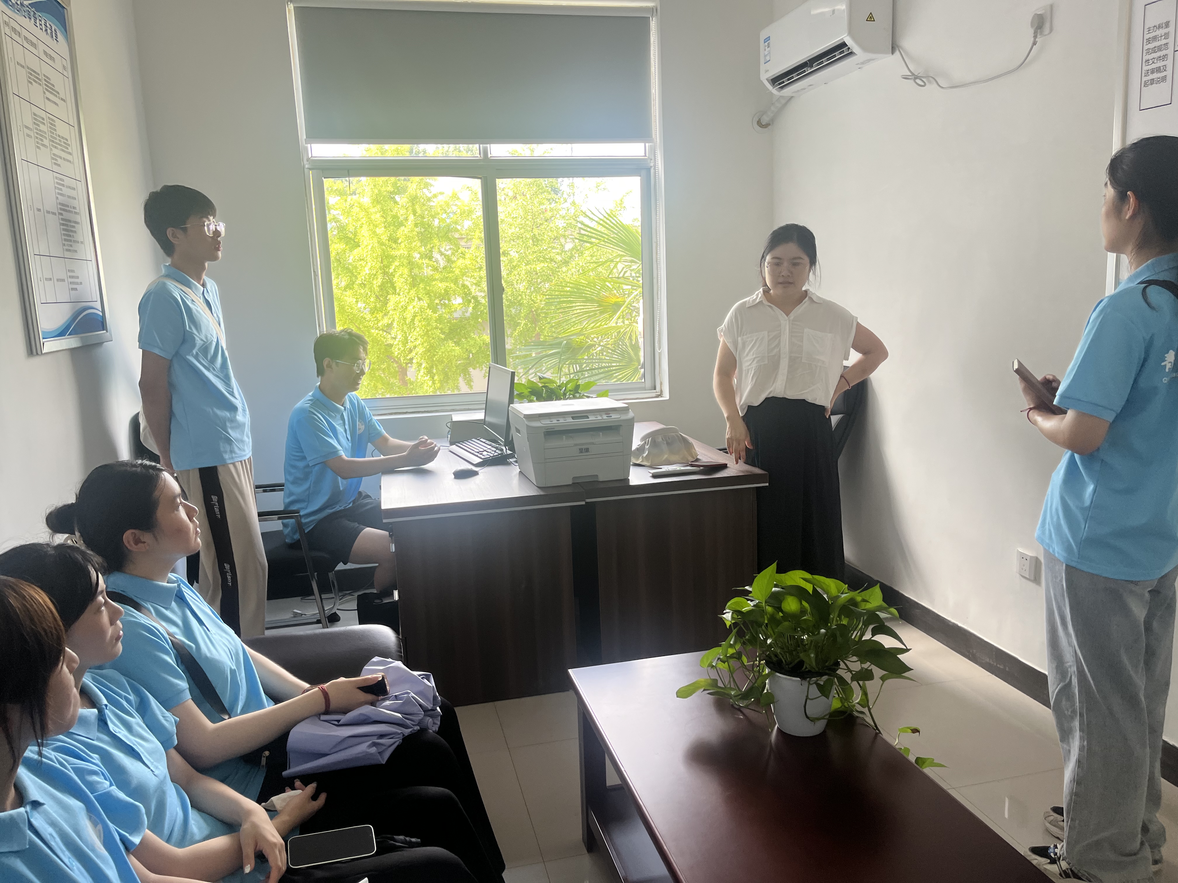 7月22日,万象城allwincity官网“青语倾言,廌逐法梦”公益普法志愿服务队赴临沂市兰陵县神山镇司法所开展调研活动,实践队通过参观司法所办公场所、了解司法所日常工作并与之进行交流提问,深入学习了基层司法流程,了解基层司法工作。期间,神山镇党委副书记刘健、神山镇司法所所长谭玉峰一行到现场指导实践活动,为实践队队员们上了一堂生动的司法实践课。