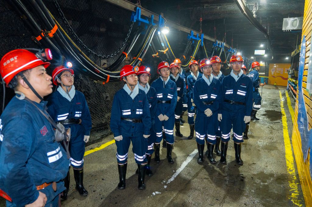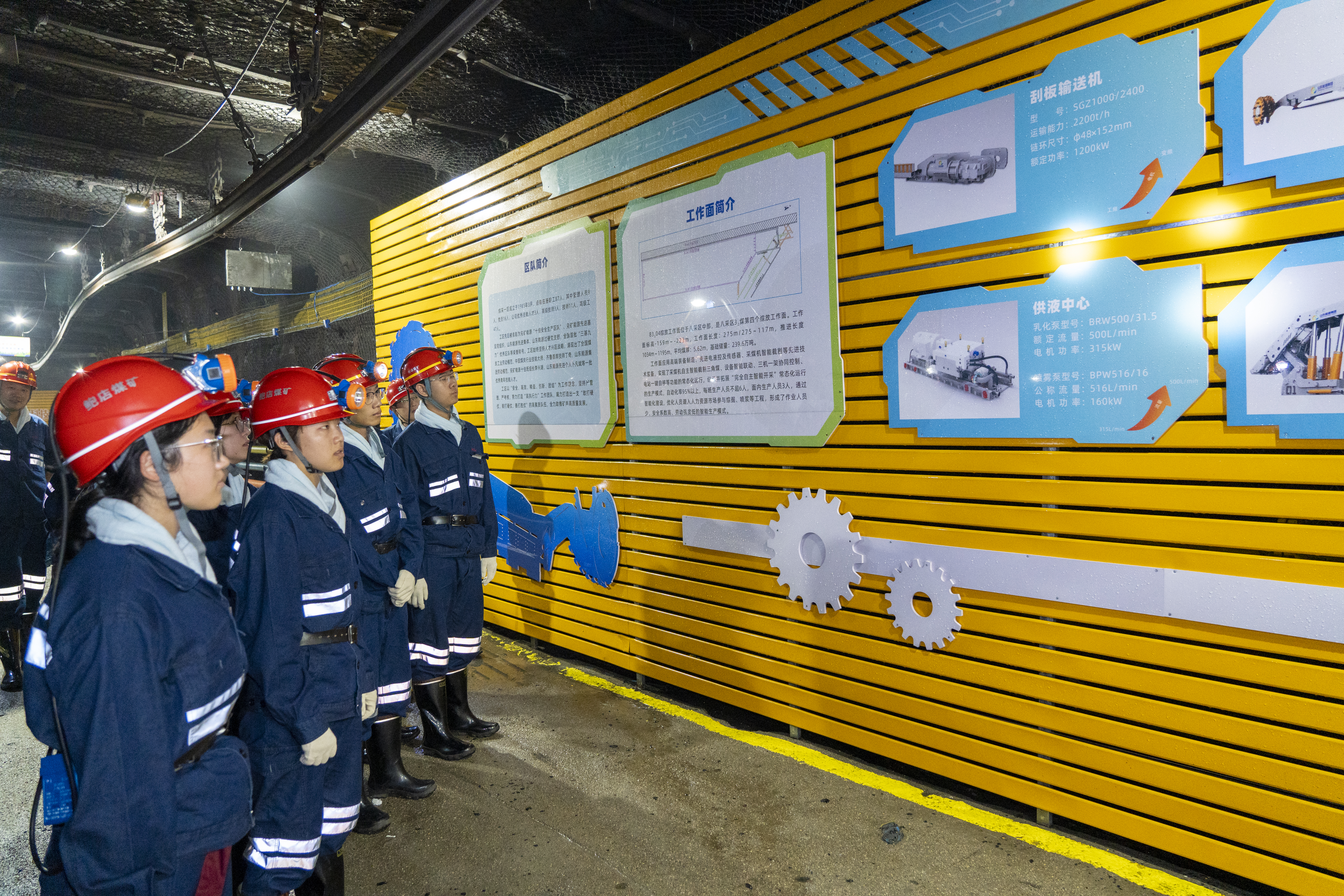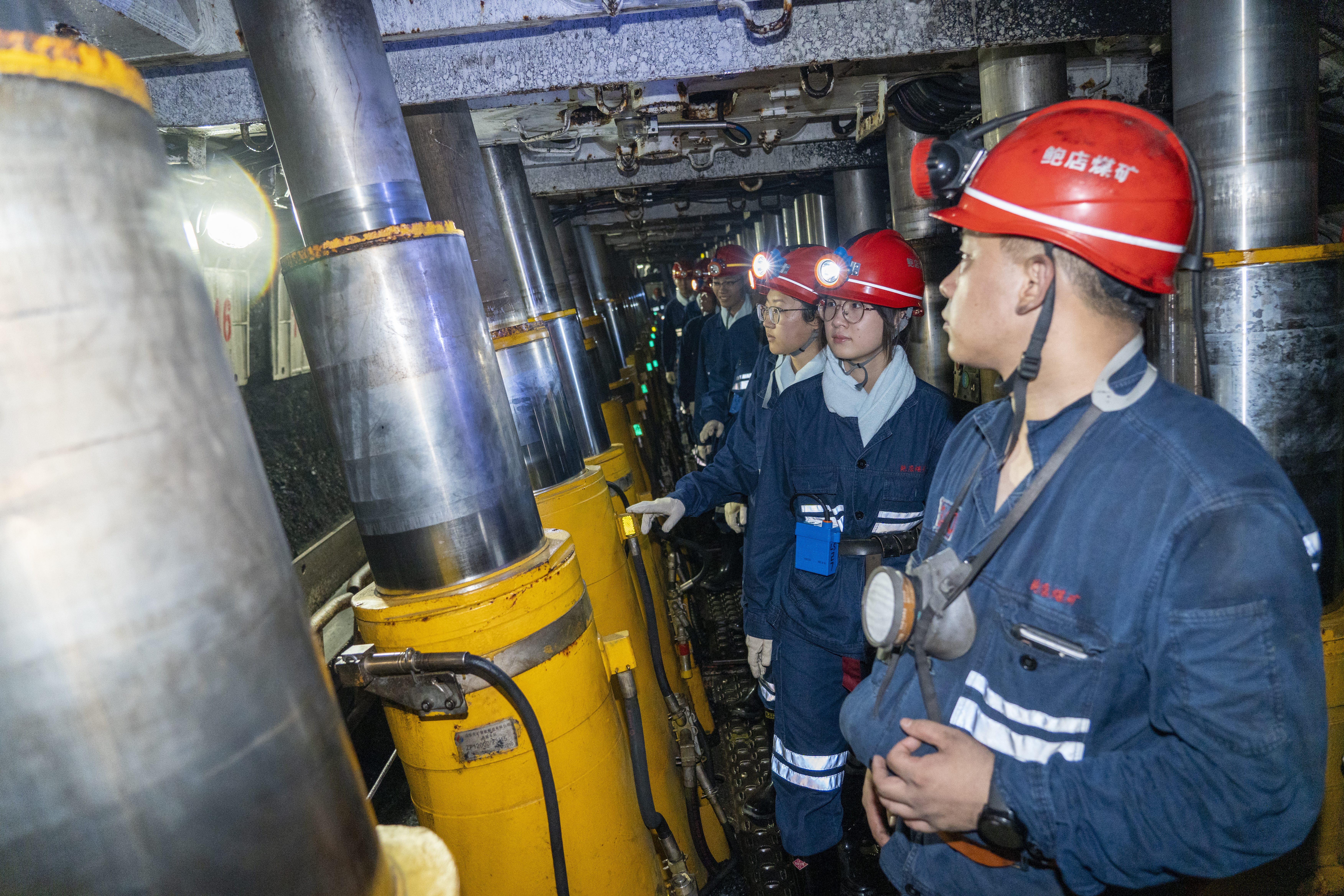 王凯科员向队员们介绍了液体泵站、液压支架、采煤胶带运输系统、通风系统等机电设备的各项功能以及设备的工作原理和作业流程。据悉,目前的井下采煤工作采用无人值守、有人巡视的工作模式,多角度、智能化监控屏幕实时监督作业面生产情况,实现了煤矿生产安全、效率双提升。在掘进工作面,实践队员们近距离感受到了煤炭开采的艰辛与不易。