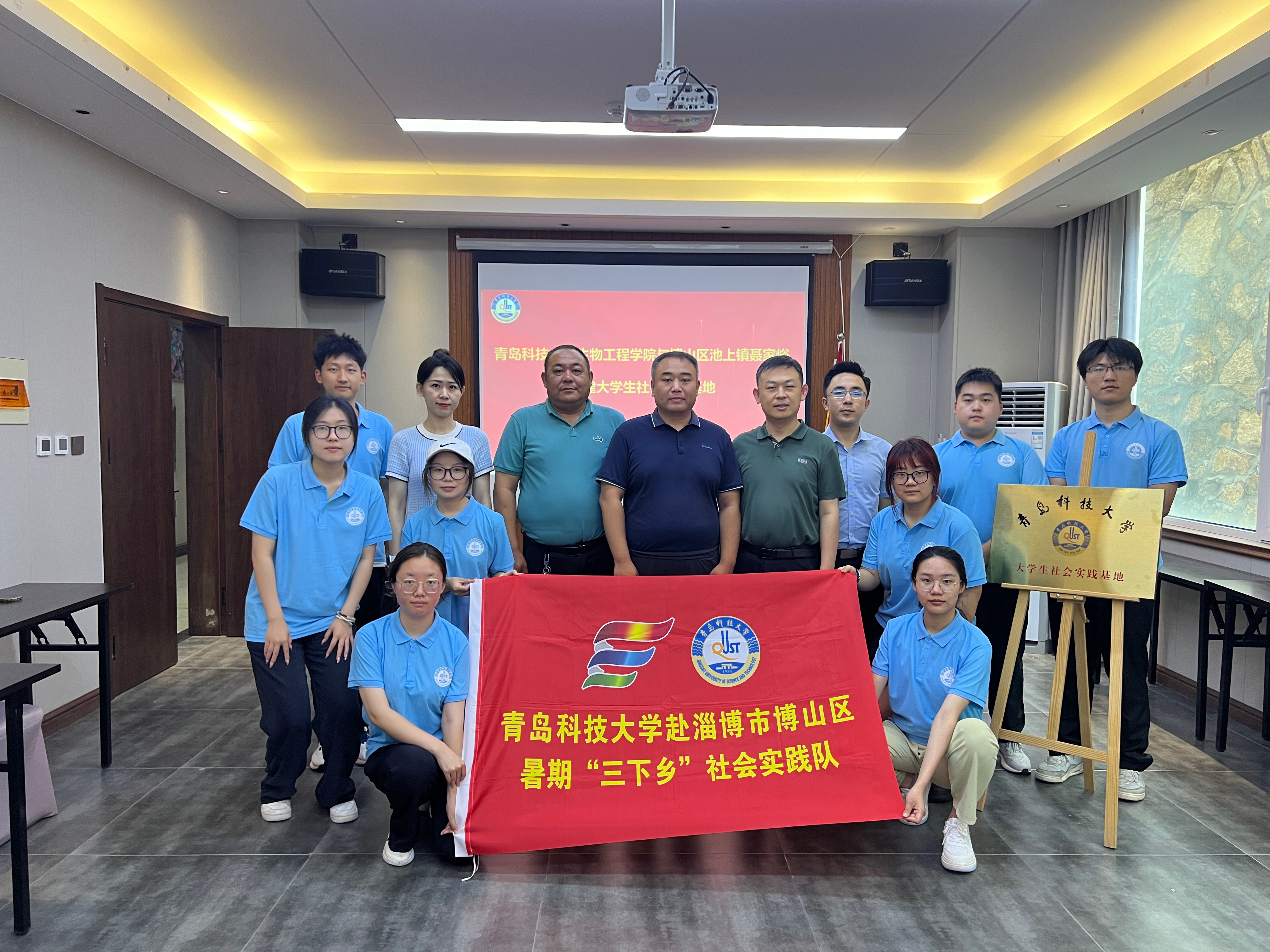 为深入学习贯彻习近平总书记关于青年工作的重要思想,深化校地合作,推动高校与乡村联建聚合力、共建促发展,引导青年学生志愿服务融入基层社会治理,传递新时代青年力量。7月27日,万象城allwincity官网生物工程学院团委与淄博市博山区池上镇聂家峪共建青年社会实践基地揭牌仪式在池上镇党委党校举行。博山区池上镇党委委员、副镇长钱程,池上镇党委委员鹿传慧,聂家峪村党支部书记黄元才,万象城allwincity官网生物工程学院团委书记秦洪庆、团委副书记刘金岭、专职团干部车玉章以及“汇聚星火 '峪'梦同行”实践团全体成员参加仪式。