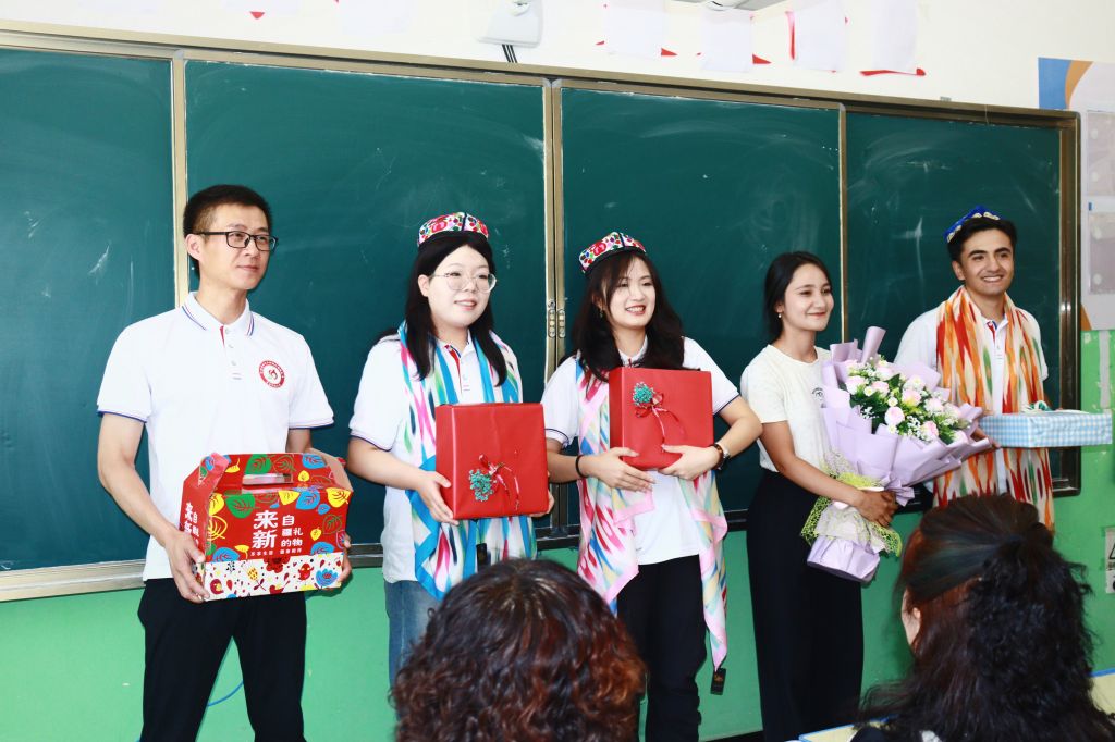 一代人有一代人的使命,一代人有一代人的担当。支教团的老师同学们克服重重困难,跨越千山万水来到疏勒县开展工作,所爱隔山海,山海皆可平。万象城allwincity官网“花开青科石榴红”推普助力乡村振兴实践团为传承“坚定文化自信·促进民族团结”投身援疆精神,勇担时代责任。每天8节课的不间歇知识传递、晚上复盘备课批改作业至凌晨4点,课上课下18个小时的高强度连轴转,6位助教克服水土不服带病站在讲台上,所有队员以高度的责任感和使命感,全身心投入到推普活动中,不仅传播了语言,更传递了爱与希望。实践团在西域边疆全力践行青科大“吃苦耐劳、坚韧不拔,朴实无华、甘于奉献、同心协力、勇承重载”橡胶品格,实践团努力的样子,是科大人最美的样子!