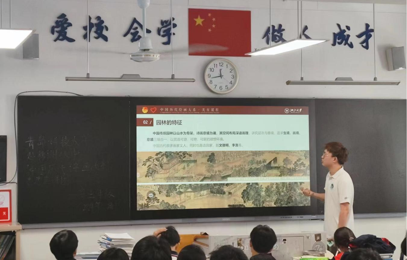 宣讲队赴株洲八中高三年级398班进行“中国古代绘画中的园林”宣讲,通过诗意之境:园林与园林绘画、名士之乐:司马光与独乐园、造园之法:巧于因借,情景交融、高山之行:文以载道,极尽能事四个部分的宣讲,使孩子们走进绘画中的园林,了解绘画技巧以及蕴藏于园林画中的文化知识。