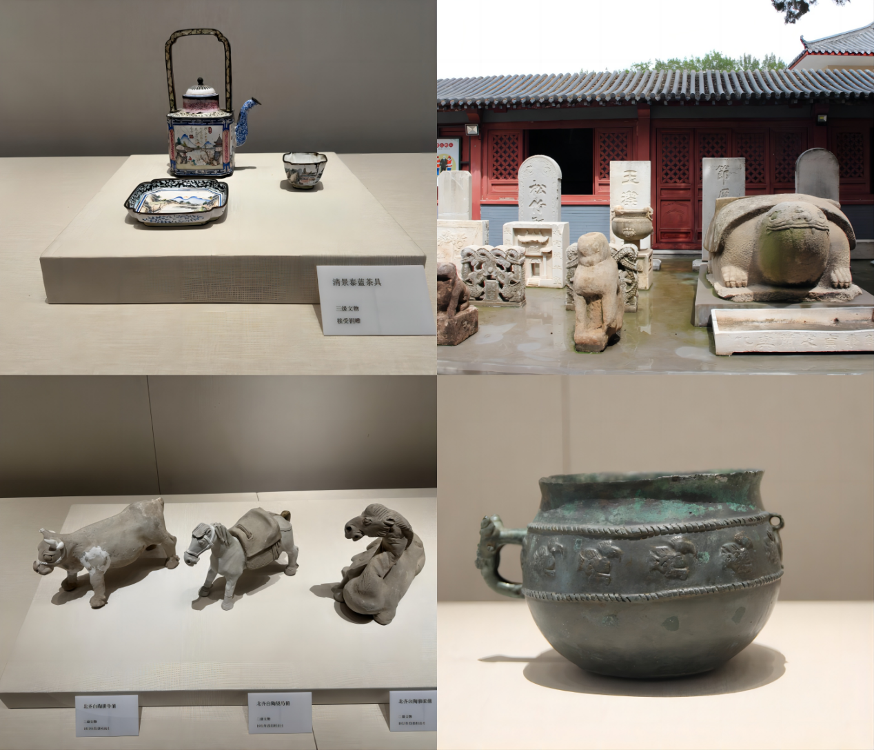 在近来新改造的展厅中,团队成员无不被眼前的景象所吸引。展厅内合理的布局和丰富的藏品,让他们流连忘返。史前石器的质朴、陶器和青铜器的精湛工艺,以及清代景泰蓝茶具和琥珀念珠的精美,都彰显着平度深厚的历史文化底蕴。