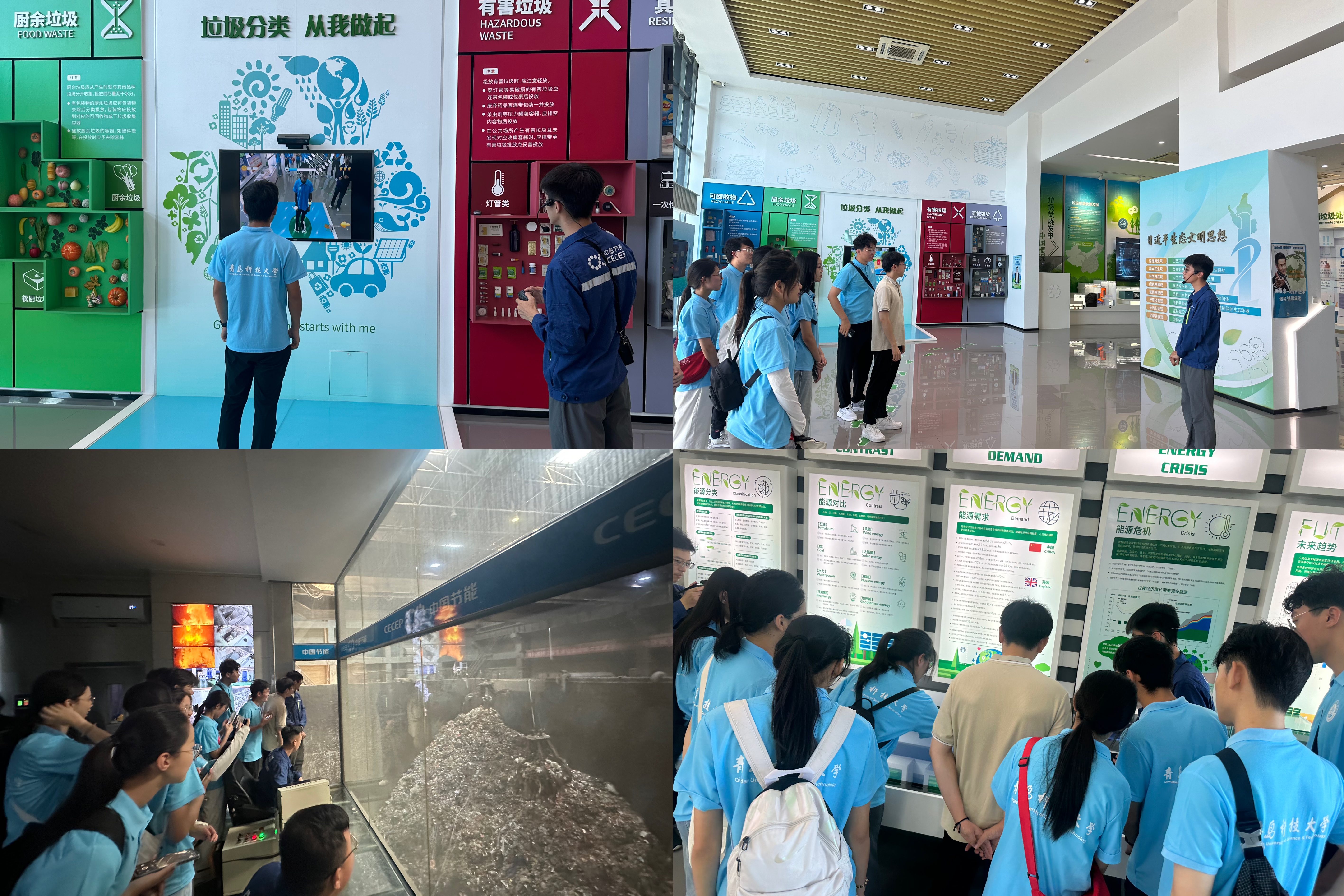 队伍前往青岛即墨节能环保有限公司,公司的专业讲解员通过生动的演示视频和趣味游戏系统地介绍了垃圾焚烧发电的原理、流程以及环保技术在其中的应用,使实践队成员们在轻松的氛围中,了解了垃圾焚烧发电的基本知识和环保技术的重要性。实践队在工厂工作人员的带领下依次参观了垃圾接收大厅、焚烧炉、发电机房以及烟气净化系统,深刻体会到了环保技术在实际应用中的巨大作用。