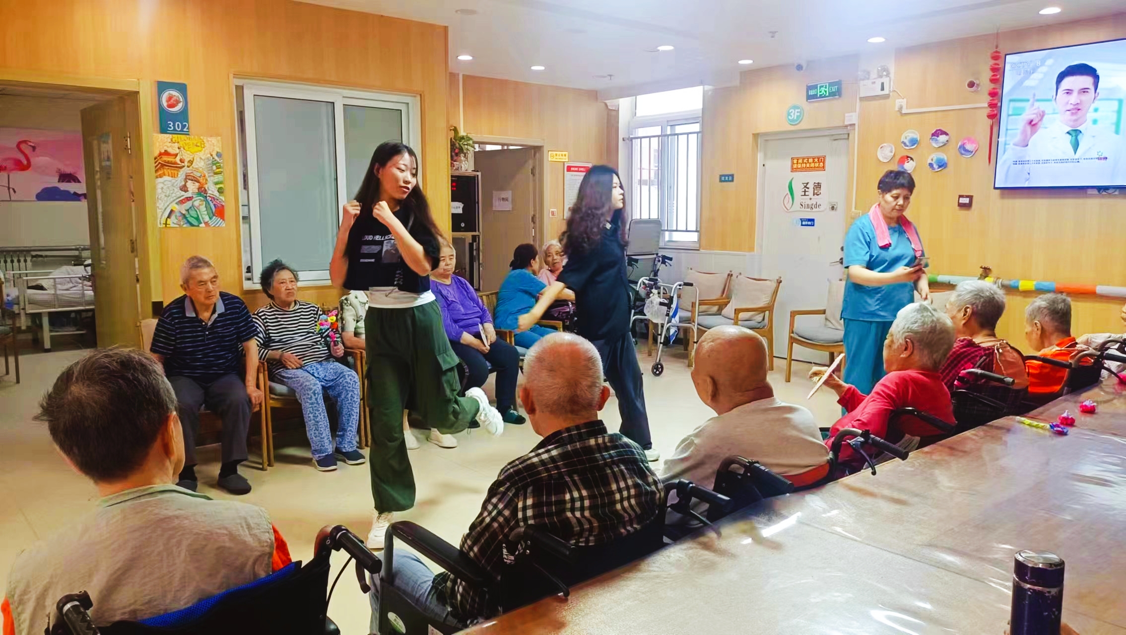 歌声是传递情感的美妙载体。随后,爷爷奶奶们与实践队员唱响《打靶归来》等一首首经典的歌曲,那熟悉的旋律仿佛带着老人们穿越时光,回到了过去的美好岁月,勾起了他们心底深处的回忆。歌声中,老人们轻轻跟唱,眼神中流露出无尽的感动和欢喜。紧接着,实践团成员们又跳起了欢快的舞蹈。充满活力的舞姿、青春洋溢的笑容,为老人们带来了愉悦和欢乐。他们用灵动的舞步,诠释着对老人们的敬爱之情,让老人们感受到了青春的气息和活力。