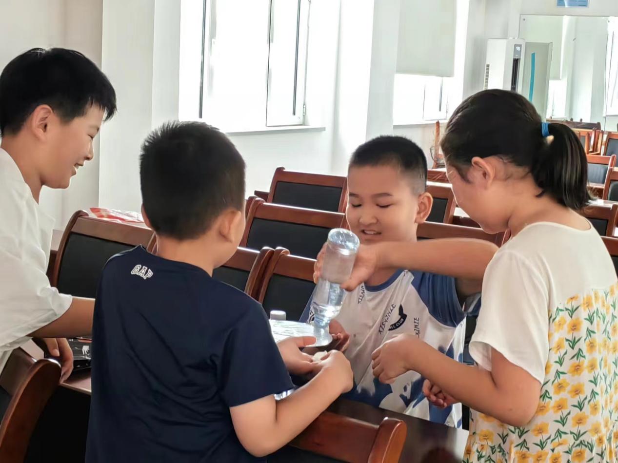 同时,志愿者们还开展了科学小课堂活动,旨在营造浓厚科学氛围,让科学创新扎根孩子们的心中。“悬空桥”“虹吸原理”“一张纸能承受多大的重量”“大气压”等实验,把生活中随处可见的素材变成了一个个妙趣横生的科学小实验。孩子们积极参与,完成了一个接一个的实验。科学的探索和发现,就像一颗颗种子,播撒在青少年们的心田,而科学小课堂,就是那把种子播种的锄头。
