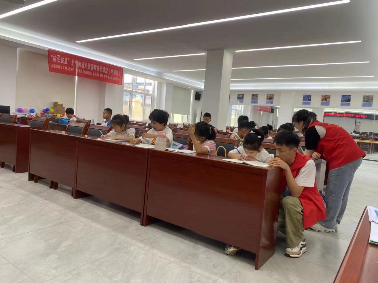 每天上午,志愿者们为社区儿童进行课业辅导,有助于让社区儿童更好地掌握课业知识,并且查漏补缺。在辅导过程中,孩子积极地向志愿者请教自己在学习中遇到的问题,志愿者耐心地为孩子们提供解决方案。经过孩子们与志愿者的共同努力,孩子们高效地完成了假期作业,进步之显著令人欣喜。