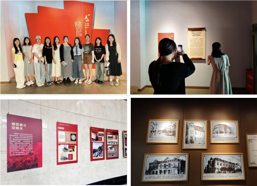 第一站他们来到了青岛市博物馆,实践团成员首先在博物馆工作人员的引导下,参观了“青岛历史”常设展览。他们在文物、历史照片的展示中了解到了青岛在抗日战争和解放战争中的重要历史事件。在红色文化专题展区,实践团成员们仔细观看了关于青岛地下党活动、抗日战争时期人民的英勇斗争以及解放战争中青岛人民的贡献等展览内容,对革命先烈的英勇事迹和革命精神有了更加直观的感受。在观看了“五月的风”纪念五四运动爆发105周年展之后,团队成员还有幸参观了《跨越时空的井冈山精神》主题展览,展览通过丰富的史料和生动的图文,再现了以毛泽东同志为代表的中国共产党人在井冈山的伟大实践历程,让他们对“井冈山精神”——坚定信念、艰苦奋斗、实事求是、敢闯新路、依靠群众、勇于胜利——有了深刻的理解和感悟。成员们纷纷表示,将把在展览中汲取的精神财富转化为实际行动,努力做到将井冈山精神融入到自己的学习和生活中。