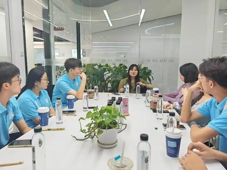 在参观完后,实践团成员们与古麦嘉禾的专业团队进行了一场深入的座谈交流。座谈会上,古麦嘉禾的资深从业者们分享了他们在新媒体领域的经验和心得,包括如何捕捉热点话题、如何塑造独特的品牌形象以及如何应对行业竞争等。实践团成员们也积极发言,提出了自己在新媒体学习和实践中遇到的困惑和问题,如怎样提高视频的传播效果、如何平衡内容的创意与商业价值等。针对这些问题,古麦嘉禾的专家们给予了耐心细致的解答,并提供了宝贵的建议。
